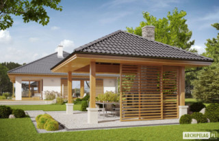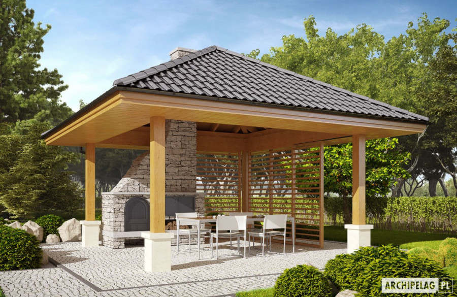 Charakterystyka: Altana z grillem i miejscem na wędzarnię wg indywidualnego projektu. Technologia i konstrukcja:Konstrukcja drewniana, dach pokryty dachówką ceramiczną lub cementową. Grill murowany Wykończenie:Drewno, okładzina kamienna lub klinkierowa, żaluzje drewniane.