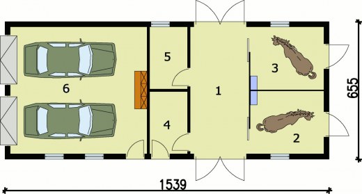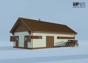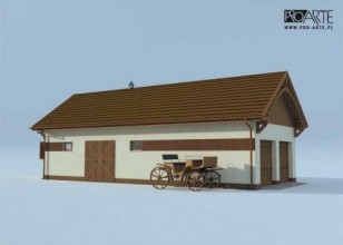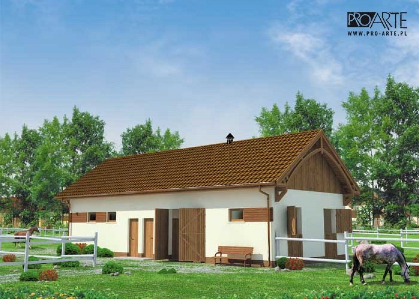 Ciekawe ustawienie wszystkich wejść do tego budynku, okaże się zapewne korzystnym rozwiązaniem w niektórych przypadkach. W projekcie tym przewidziano dwustanowiskowy garaż z drzwiami wjazdowymi zorientowanymi na zachód oraz dwa boksy dla koni usytuowane po wschodniej stronie budynku. Zwierzęta przebywające w boksach, mogą z nich wyjść korytarzem znajdującym się wewnątrz budynku stajennego, jak i bezpośrednio z boksów. Wewnątrz budynku przewidziano także siodlarnię i paszarnię. Garaż został oddzielony od pomieszczeń przeznaczonych dla koni, ale do obu części prowadzą dodatkowe drzwi przewidziane na ścianie południowej. Taki budynek będzie niezwykle funkcjonalny, jeżeli zostanie odpowiednio wkomponowany w otoczenie.Projekt stajni dla koni. Projekt stajni składa się z czterech egzemplarzy a w tym części architektonicznej, konstrukcyjnej, wewnętrznych instalacji wod.-kan i instalacji wewnętrznej elektrycznej. W projekcie załączone są podstawowe zestawienie stali, drewna i stolarki okienno-drzwiowej. Do projektu dołączamy bezpłatną zgodę na wprowadzenie zmian, oświadczenie projektantów o wykonaniu projektu zgodnie z obowiązującymi normami i przepisami oraz kserokopie uprawnień projektantów wraz z aktualnym wpisem do izby.Poddasze użytkowe : 18.52m2Kochasz konie? Zapraszamy do serwisu ogłoszeniowego i forum http://allekonie.pl