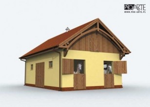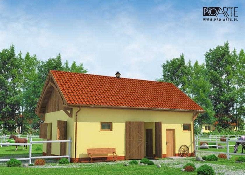 Zobacz wersję budynku gospodarczego BGS1 Projekt posiada poddasze nie użytkowe.Ta niezwykle urocza stajnia została zaprojektowana tak, by spełniać wszystkie normy niezbędne ku temu, by mogły tam we właściwych warunkach przebywać konie. Jest jednak obiektem stworzonym z myślą o tych z Państwa, którym nie zależy na rozwijaniu własnej hodowli. Wewnątrz budynku, z lewej jego strony, przewidziano obok siebie dwa boksy o powierzchni 10,5 m2. Przez środek idzie szeroka komunikacja, z której można wejść do paszalni lub siodlarni, a stąd do wygodnej łazienki. Cały obiekt jest bardzo zgrabny, dobrze prezentuje się z zewnątrz, a wnętrze jest bardzo funkcjonalne. Zanim jednak wybierze się ten projekt, należy się zastanowić, czy ilość stanowisk nie okaże się w przyszłości za mała.Projekt stajni dla koni. Projekt stajni składa się z czterech egzemplarzy a w tym części architektonicznej, konstrukcyjnej, wewnętrznych instalacji wod.-kan i instalacji wewnętrznej elektrycznej. W projekcie załączone są podstawowe zestawienie stali, drewna i stolarki okienno-drzwiowej. Do projektu dołączamy bezpłatną zgodę na wprowadzenie zmian, oświadczenie projektantów o wykonaniu projektu zgodnie z obowiązującymi normami i przepisami oraz kserokopie uprawnień projektantów wraz z aktualnym wpisem do izby.Kochasz konie? Zapraszamy do serwisu ogłoszeniowego i forum najnowszych. Zobacz najnowsze ogłoszenia.