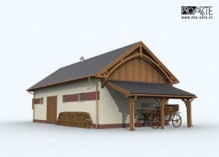 Projekt tej ładnej i funkcjonalnej stajni został stworzony dla osób pragnących posiadać dwa konie. Boksy zostały przewidziane przy wschodniej ścianie budynku. Przebywające tu zwierzęta mogą wychodzić na zewnątrz bezpośrednio z boksów, jak i wewnątrz budynku stajennego, obszernym korytarzem. W projekcie przewidziano także siodlarnię, z której przechodzi się do łazienki oraz osobne pomieszczenie na paszę.Dodatkowymi atutami tego projektu jest zamknięta przestrzeń przeznaczona na garaż oraz, przylegająca do zachodniej ściany budynku wiata, którą możemy dowolnie zagospodarować. Czy ten projekt nie jest wart Państwa uwagi?Projekt stajni dla koni. Projekt stajni składa się z czterech egzemplarzy a w tym części architektonicznej, konstrukcyjnej i instalacji wewnętrznej elektrycznej. W projekcie załączone są podstawowe zestawienie stali, drewna i stolarki okienno-drzwiowej. Do projektu dołączamy bezpłatną zgodę na wprowadzenie zmian, oświadczenie projektantów o wykonaniu projektu zgodnie z obowiązującymi normami i przepisami oraz kserokopie uprawnień projektantów wraz z aktualnym wpisem do izby.Kochasz konie? Zapraszamy do serwisu ogłoszeniowego i forum http://allekonie.pl