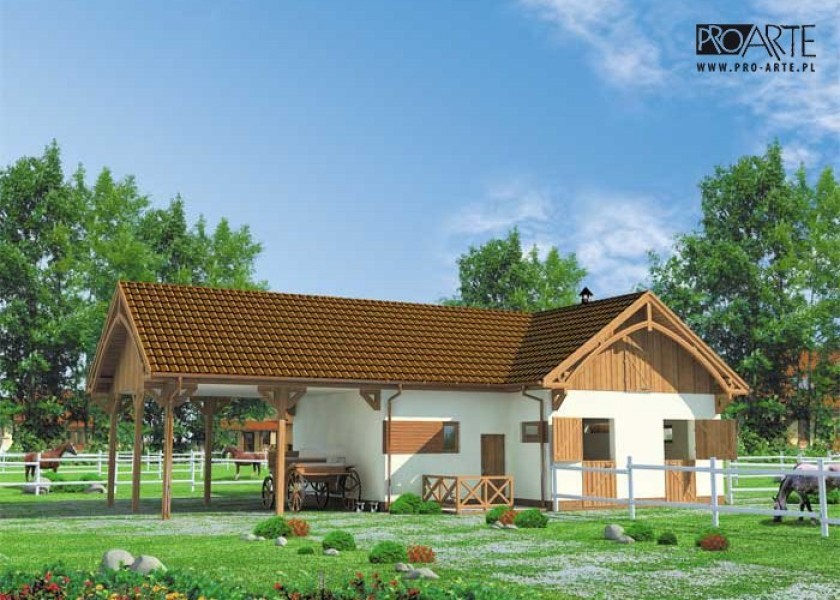 Być może ta stajnia okaże się dla Ciebie strzałem w dziesiątkę? Zaopatrzono ją w cztery przestronne boksy dla koni (każdy z nich o powierzchni 10,5m2), paszalnię, do której można wejść z komunikacji łączącej wszystkie boksy, siodlarnię oraz łazienkę z kabiną prysznicową. Każdy boks posiada swoje dwa wyjścia – jedno bezpośrednio na zewnątrz, drugie – do dużej komunikacji, z której wyjście skierowano na wschód. Pomieszczenia pomocnicze zostały umieszczone po zachodniej stronie budynku. Tam też przewidziano specjalną wiatę, pod którą można nawet zaparkować samochód. Do budynku wchodzi się także od południowej strony, przechodząc przez uroczy ganeczek. Być może właśnie ten projekt stajni okaże się dla Ciebie odpowiednim rozwiązaniem?Projekt stajni dla koni. Projekt stajni składa się z czterech egzemplarzy a w tym części architektonicznej, konstrukcyjnej, wewnętrznych instalacji wod.-kan i instalacji wewnętrznej elektrycznej. W projekcie załączone są podstawowe zestawienie stali, drewna i stolarki okienno-drzwiowej. Do projektu dołączamy bezpłatną zgodę na wprowadzenie zmian, oświadczenie projektantów o wykonaniu projektu zgodnie z obowiązującymi normami i przepisami oraz kserokopie uprawnień projektantów wraz z aktualnym wpisem do izby.Projekt posiada poddasze użytkowe (skład na siano i słomę) 22,95m2.Kochasz konie? Zapraszamy do serwisu ogłoszeniowego i forum najnowszych. Zobacz najnowsze ogłoszenia.