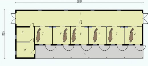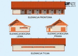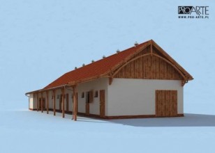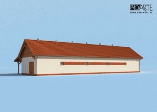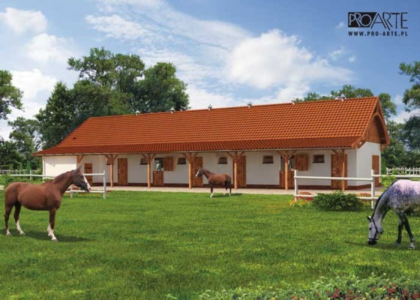 Projekt stajni dla koni S36 Długa komunikacja wewnątrz budynku oraz odpowiadająca jej wiata biegną wzdłuż stajni i prowadzą do sześciu dużych rozmiarów boksów przeznaczonych dla koni. W tym gustownym i praktycznym budynku znajdziemy również paszalnię i siodlarnię. Stajnia z pewnością sprawdzi się w przydomowej hodowli koni.Projekt stajni dla koni. Projekt stajni składa się z czterech egzemplarzy a w tym części architektonicznej, konstrukcyjnej, wewnętrznych instalacji wod.-kan i instalacji wewnętrznej elektrycznej. W projekcie załączone są podstawowe zestawienie stali, drewna i stolarki okienno-drzwiowej. Do projektu dołączamy bezpłatną zgodę na wprowadzenie zmian, oświadczenie projektantów o wykonaniu projektu zgodnie z obowiązującymi normami i przepisami oraz kserokopie uprawnień projektantów wraz z aktualnym wpisem do izby.Podasze (skład słomy i siana 115,00m2)Kochasz konie? Zapraszamy do serwisu ogłoszeniowego i forum http://allekonie.pl