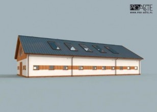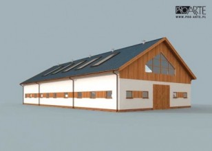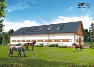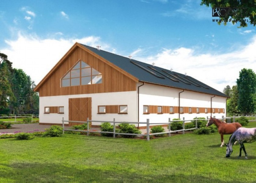 Projekt budynku ujeżdżalni dla koni. Ujeżdżalnia ta jest obiektem zabudowanym i okrytym dachem, idealnie nadaje się do ujeżdżania koni oraz na naukę jazdy konno niezależnie od stanu pogody. Podłożem może być wyłożony piasek lub trociny. Budynek może być wykorzystywany do treningów jak i konkursów końskich. Budynek po adaptacji może pełnić funkcje biegalni , hali magazynowej jak i budynku inwentarskiego. Projekt stajni składa się z czterech egzemplarzy a w tym części architektonicznej, konstrukcyjnej i instalacji wewnętrznej elektrycznej. W projekcie załączone są podstawowe zestawienie stali, drewna i stolarki okienno-drzwiowej. Do projektu dołączamy bezpłatną zgodę na wprowadzenie zmian, oświadczenie projektantów o wykonaniu projektu zgodnie z obowiązującymi normami i przepisami oraz kserokopie uprawnień projektantów wraz z aktualnym wpisem do izbyMożliwość zakupu alternatywnej konstrukcji dachu w postaci wiązarów (projekt, wykonawstwo i montaż). Zapraszamy do kontaktu +48 33 811 89 57 ; mobil : +48 512 119 101, dachy@agrobud.ig.agrobud.pl, konstruktor@agrobud.ig.pl ; www.agrobud.euKochasz konie? Zapraszamy do serwisu ogłoszeniowego i forum http://allekonie.pl