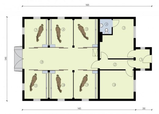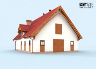 Projekt Stajni S49 na 6 koni, Projekt stajni dla koni. Projekt stajni składa się z czterech egzemplarzy a w tym części architektonicznej, konstrukcyjnej i instalacji wewnętrznej elektrycznej i sanitarnej. W projekcie załączone są podstawowe zestawienie stali, drewna i stolarki okienno-drzwiowej. Do projektu dołączamy bezpłatną zgodę na wprowadzenie zmian, oświadczenie projektantów o wykonaniu projektu zgodnie z obowiązującymi normami i przepisami oraz kserokopie uprawnień projektantów wraz z aktualnym wpisem do izby.