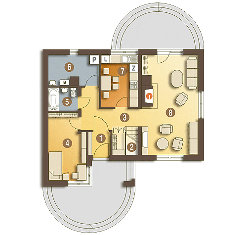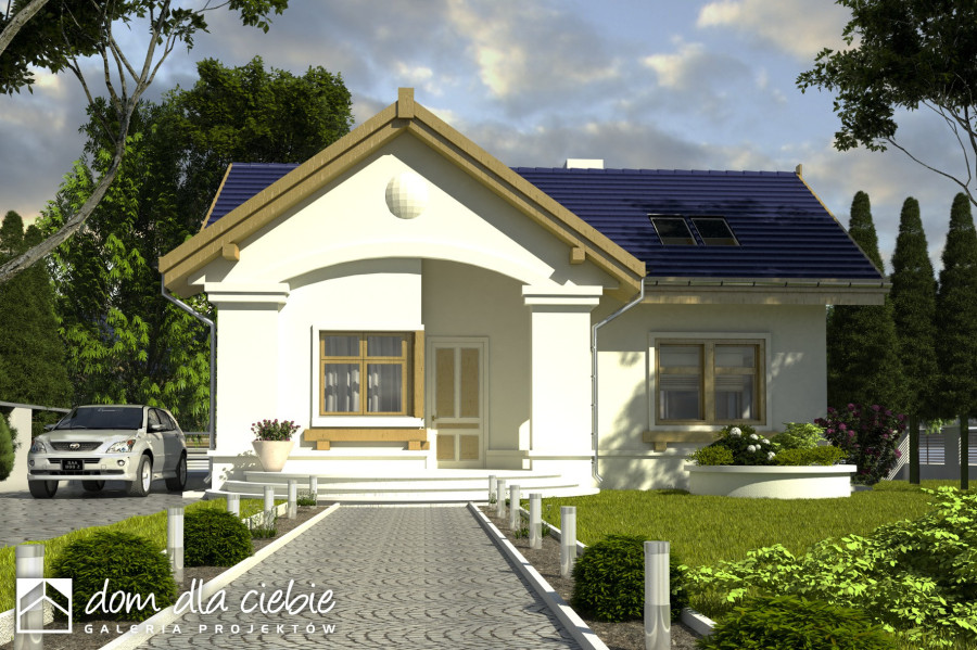 Nieduży i bardzo wygodny dom parterowy z poddaszem użytkowym przeznaczony dla 4-5-cio osobowej rodziny. Na parterze zaprojektowano wiatrołap, hol, pokój gościnny, salon, oddzielną kuchnię oraz łazienkę. W pomieszczeniu gospodarczo-technicznym znajduje się piec CO. Na przeciwko wejścia do kuchni znajduje się klatka schodowa prowadząca na poddasze, gdzie znajdują się trzy wygodne sypialnie oraz duża łazienka. Dzięki prostej konstrukcji dom będzie tani w realizacji... Sprawdź inne projekty domów - Zapraszamy !
