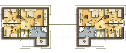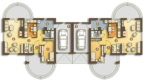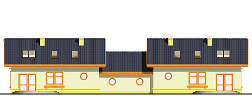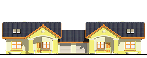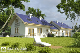(Uwaga: projekty typu bliźniak oferujemy jako domy dwulokalowe, projekt można zamówić również w zabudowie bliźniaczej) Jeden segment to nieduży i bardzo wygodny dom parterowy z poddaszem użytkowym przeznaczony dla 4-5-cio osobowej rodziny. Na parterze zaprojektowano wiatrołap, hol, pokój gościnny, salon, oddzielną kuchnię oraz łazienkę. Garaż połączony jest z częścią mieszkalną poprzez pomieszczenie gospodarczo-techniczne, w którym znajduje się piec CO. Na przeciwko wejścia do kuchni znajduje się klatka schodowa prowadząca na poddasze, gdzie znajdują się trzy wygodne sypialnie oraz duża łazienka. Dzięki prostej konstrukcji dom będzie tani w realizacji... Sprawdź inne projekty domów - Zapraszamy !