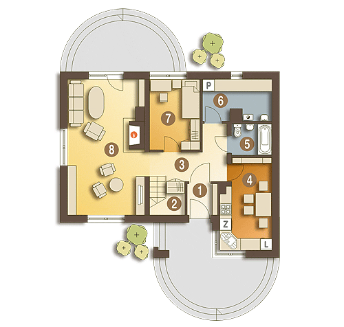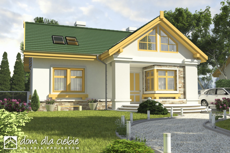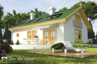 Nieduży i bardzo wygodny dom parterowy z poddaszem użytkowym przeznaczony dla 4-5-cio osobowej rodziny. Na parterze zaprojektowano wiatrołap, hol, pokój gościnny, salon, oddzielną kuchnię oraz łazienkę. W pomieszczeniu gospodarczo-technicznym znajduje się piec CO. Na przeciwko pokoju gościnnego znajduje się klatka schodowa prowadząca na poddasze, gdzie znajdują się trzy wygodne sypialnie, garderoba oraz duża łazienka. Dzięki prostej konstrukcji dom będzie tani w realizacji... Sprawdź inne projekty domów - Zapraszamy !