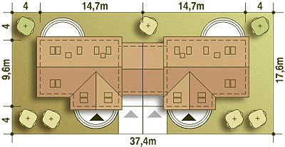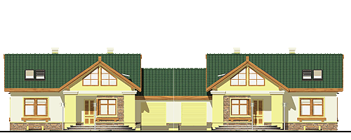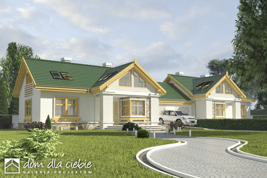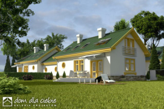 (Uwaga: projekty typu bliźniak oferujemy jako domy dwulokalowe, projekt można zamówić również w zabudowie bliźniaczej) Jeden segment to nieduży i bardzo wygodny dom parterowy z poddaszem użytkowym przeznaczony dla 4-5-cio osobowej rodziny. Na parterze zaprojektowano wiatrołap, hol, pokój gościnny, salon, oddzielną kuchnię oraz łazienkę. Garaż połączony jest z częścią mieszkalną poprzez pomieszczenie gospodarczo-techniczne, w którym znajduje się piec CO. Na przeciwko pokoju gościnnego zaprojektowano klatkę schodową prowadzącą na poddasze, gdzie znajdują się trzy wygodne sypialnie, garderoba oraz duża łazienka. Dzięki prostej konstrukcji dom będzie tani w realizacji... Sprawdź inne projekty domów - Zapraszamy !