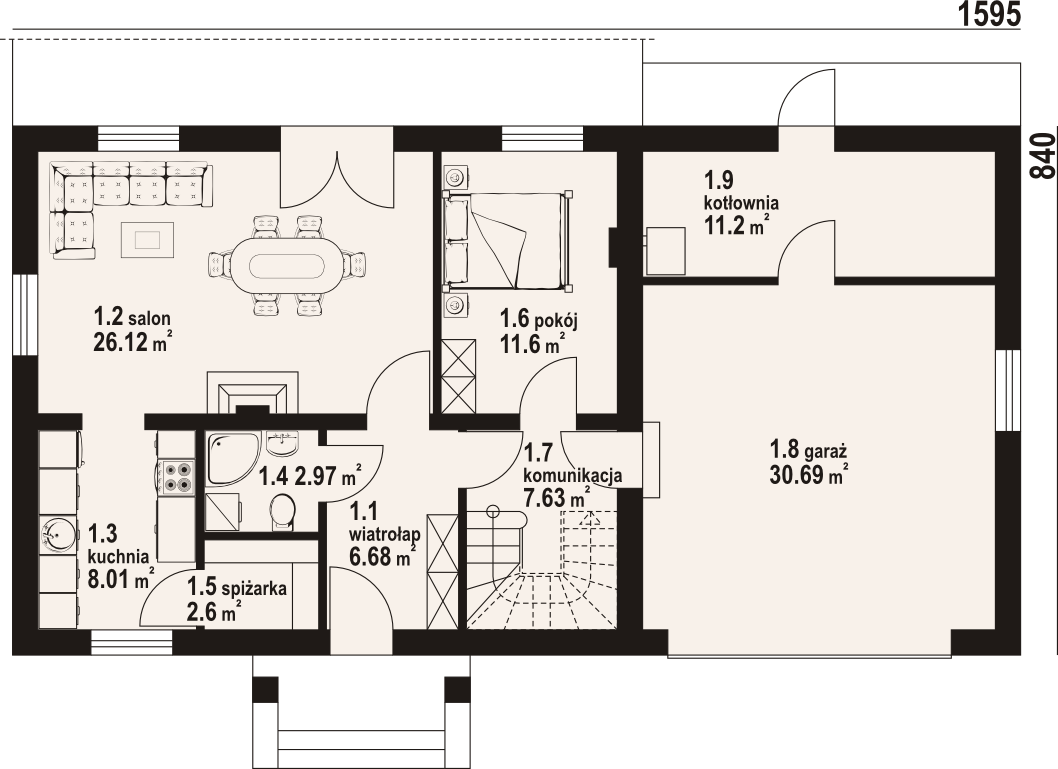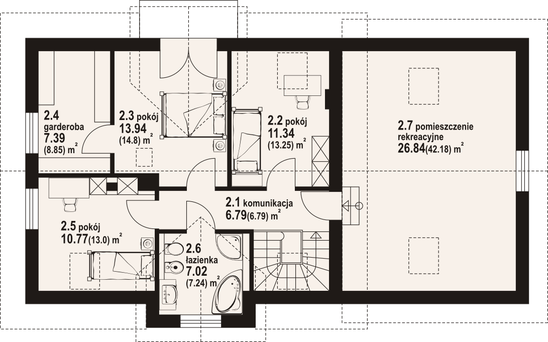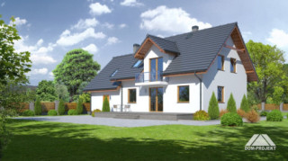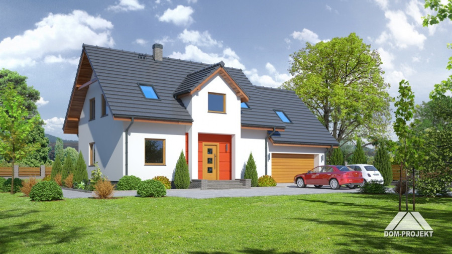 Piękny dom o bogatym programie i funkcjonalnie zaprojektowanym układzie pomieszczeń. Na parterze salon z kominkiem połączony z wydzieloną kuchnią. Jest tam także dodatkowy pokój, łazienka, a przy kuchni spiżarka. Na poddaszu znajdziemy trzy sypialnie, łazienkę i duże pomieszczenie rekreacyjne. Sypialnia małżeńska posiada własną garderobę. Niewątpliwie zaletą domu jest dwustanowiskowy garaż z zaprojektowaną na jego przedłużeniu dużą kotłownią.