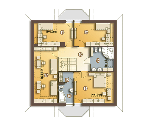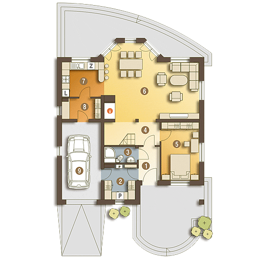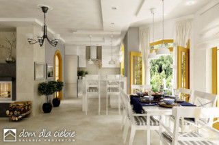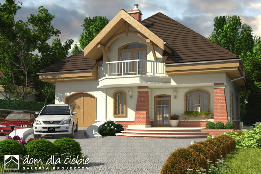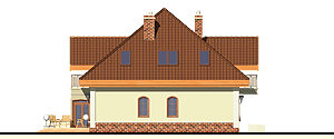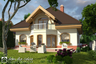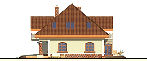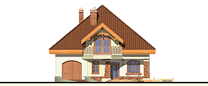 Rodzinny dom piętrowy dla 5-6-cio osobowej rodziny. Przewidziany układ funkcjonalny rozdziela przestrzeń ogólnodostępną, zlokalizowaną na parterze od części sypialnej, znajdującej się na piętrze. Parter obejmuje salon z kuchnią i jadalnią, pokój gościnny, łazienkę oraz spiżarnię przejściową z garażu, hol ze schodami i wiatrołap. W parterze przewidziano również wbudowany jednostanowiskowy garaż i pomieszczenie techniczne z piecem CO - przejściowe do wiatrołapu. Piętro dostępne przez wygodne schody to przestrzeń obejmująca hol, cztery wygodne pokoje sypialne oraz dwie łazienki ( jedna połączona z sypialnią rodziców).fundamenty: BETONOWE ściany zewnętrzne: POROTHERM+STYROPIAN TERMO ORGANIKA ściany wewnętrzne: POROTHERM/ CEGŁ.DZIURAWKA rodzaj stropu: TERIVA elewacje: TYNK STRUKTURALNY, CEGŁA KLINKIEROWA pokrycie dachu: DACHÓWKA CEM. lub CER.