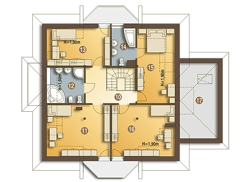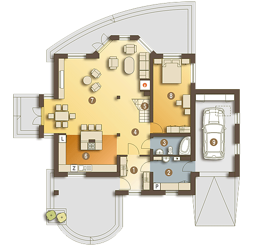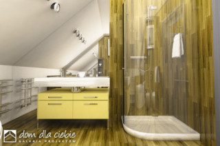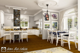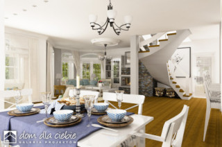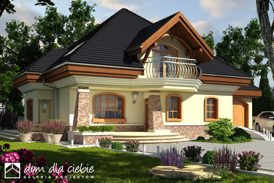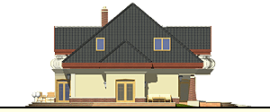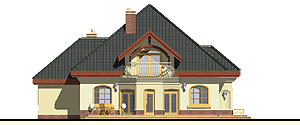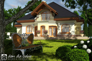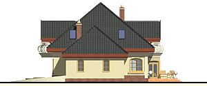 Reprezentacyjny, wytworny, rodzinny dom piętrowy dla 5-7-cio osobowej rodziny. Przewidziany układ funkcjonalny rozdziela przestrzeń ogólnodostępną, zlokalizowaną na parterze od części sypialnej, znajdującej się na piętrze. Parter obejmuje salon, dużą kuchnię z tzw.wyspą i jadalnią, pokój gościnny, łazienkę oraz hol z eleganckimi schodami i wiatrołap. W parterze przewidziano również pomieszczenie techniczne z piecem CO przejściowe do dobudowanego garażu jedno stanowiskowego. Piętro dostępne przez wygodne schody to przestrzeń obejmująca hol, cztery wygodne pokoje sypialne oraz dwie łazienki ( jedna połączona z sypialnią rodziców). Przestrzeń nad garażem dostępna przez wyłaz stropowy przeznacza się na cele gospodarcze.fundamenty: BETONOWE ściany zewnętrzne: POROTHERM+STYROPIAN TERMO ORGANIKA ściany wewnętrzne: POROTHERM/ CEGŁ.DZIURAWKA rodzaj stropu: TERIVA elewacje: TYNK STRUKTURALNY, CEGŁA KLINKIEROWA pokrycie dachu: DACHÓWKA CEM. lub CER.