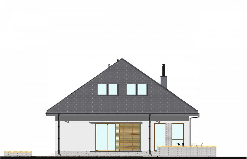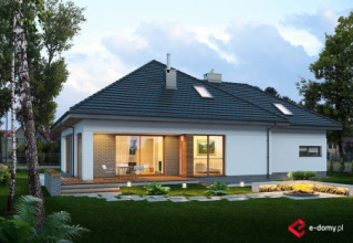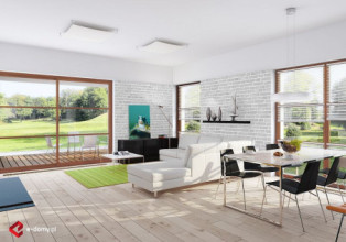 Projekt domu z poddaszem o kącie nachylenia połaci 35 stopni, z salonem połączonym z dużą kuchnią z jadalnią. Dodatkowy pokój na parterze można wykorzystać do pracy lub jako sypialnię. Na poddaszu zostały zlokalizowane trzy sypialnie, w tym jedna z dużą garderobą i łazienką, oraz duża wspólna łazienka.