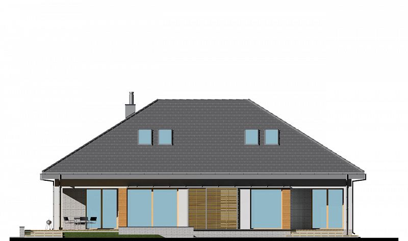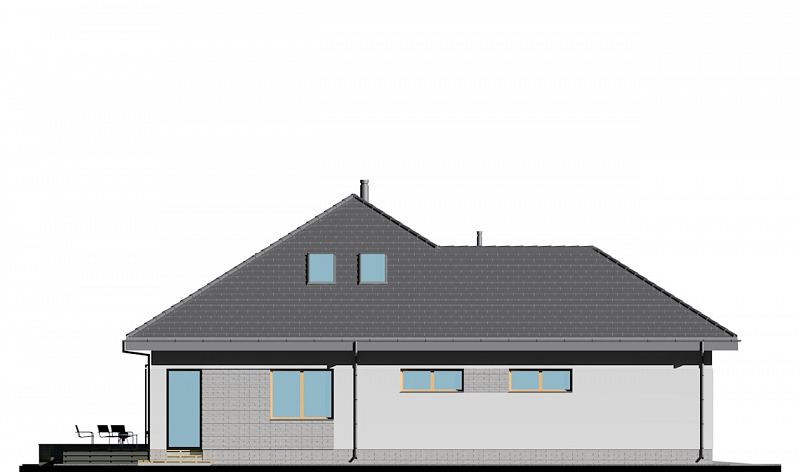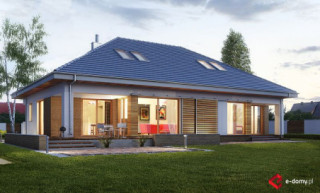 Jest to projekt komfortowego, parterowego domu jednorodzinnego. Duża, widna kuchnia ze stolikiem śniadaniowym łączy się z jadalnią. Z jadalni jest możliwość wyjścia na taras. Spiżarka znajdująca się na zapleczu części kuchennej poprawia jej użytkowość i funkcjonalność. Dom podzielony jest na dwie strefy: dzienną i sypialną. W tej drugiej znajdują się dwie wygodne sypialnie z dostępem do mniejszego tarasu. W holu zaprojektowano proste schody na strych/poddasze nieużytkowe. W razie potrzeby, projekt ma możliwość zaadaptowania poddasza na część użytkową.
