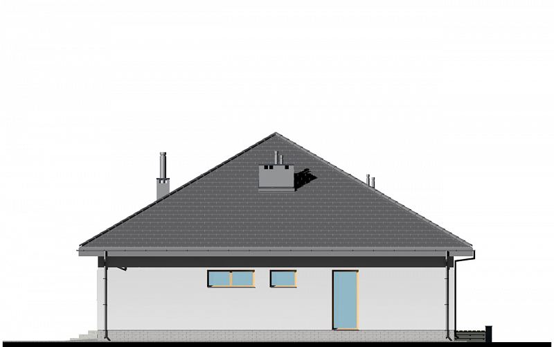 Pomniejszona wersja projektu E-175 z garażem jednostanowiskowym, w prostej bryle opartej na planie prostokąta. W części dziennej zaplanowano duży otwarty salon z jadalnią oraz kuchnię od strony wejścia, ze spiżarnią. Z tyłu domu, w części sypialnej zaplanowano trzy sypialnie, WC oraz pełnowartościową łazienkę z wanną i prysznicem. Atutem domu jest bardzo łatwa możliwość zaadaptowania poddasza (projekt zawiera schody na poddasze).