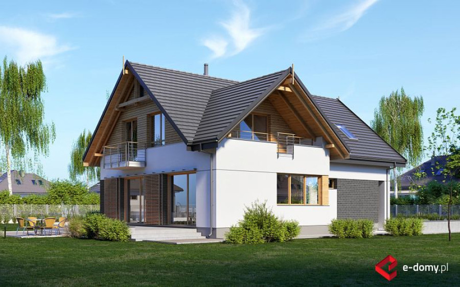 ładnie, estetycznie, co prawda taki duży garaz na dwa auta nam nie potrzebny, ale w sumie może kiedyś dokupimy drugie auto i nie będziemy musieli już się martwić o dobudowywanie kolejnego wolnostojącego garażu na samochód.generalnie taki domek w takiej kolorystyce i z takim układem pomieszczeń chyba najbardziej robi na mnie wrażenie z tych wszystkich,suepr projekt E-203!