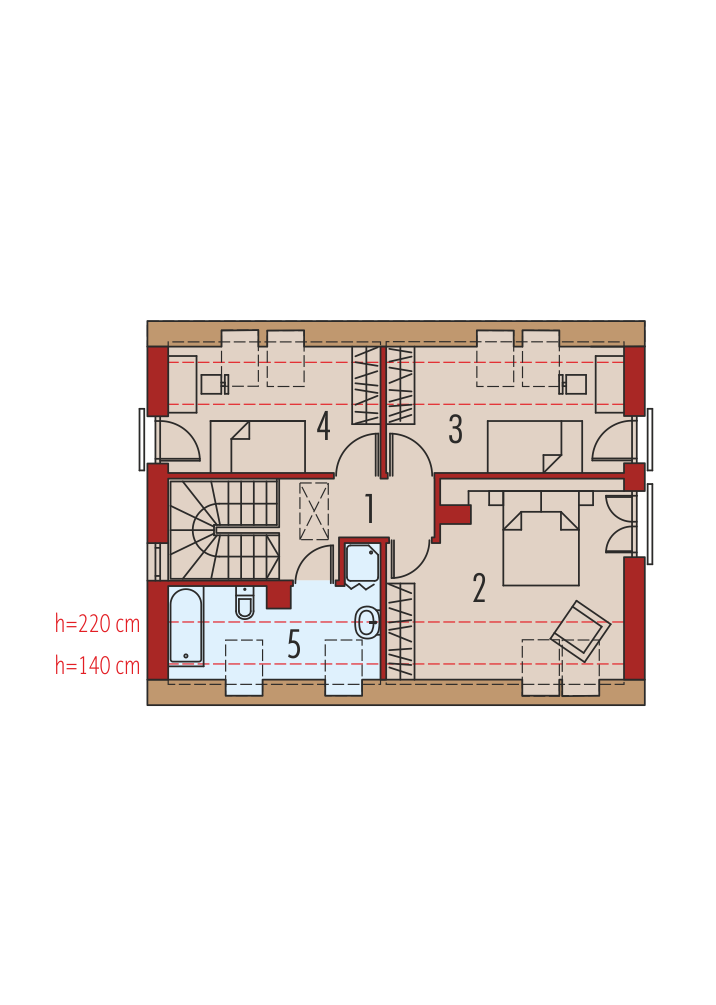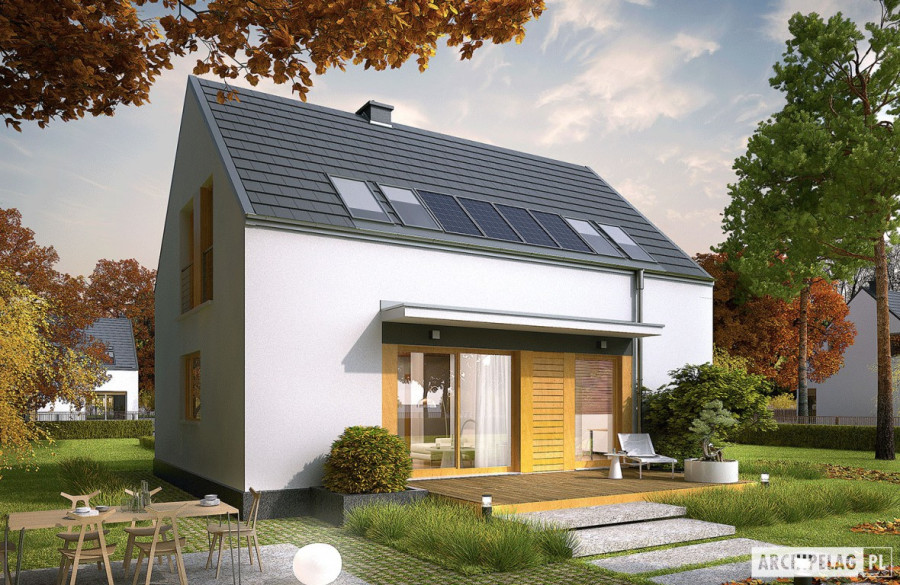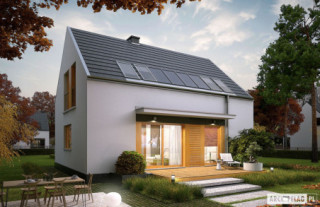 Charakterystyka: dom parterowy z poddaszem użytkowym, niepodpiwniczonyPrzeznaczenie: dom dla 4-5-osobowej rodzinyTechnologia i konstrukcja:Fundamenty: ławy, bloczki betonowe 24 cm, ocieplenie styropian 15 cmŚciany zewnętrzne: murowane, dwuwarstwowe, pustaki ceramiczne gr. 24 cm, ocieplenie 20 cmŚciany wewnętrzne: murowane, pustaki ceramiczne, ściany nośne 24 cm, ścianki działowe 12 cmPodłoga na gruncie: płyta betonowa, ocieplenie styropian 15 cmStrop: gęstożebrowy TerivaDach: konstrukcja drewniana, ocieplenie wełna mineralna 30 cm, dachówka płaska lub inna o podobnych parametrachRozwiązania instalacyjne: Ogrzewanie: kocioł gazowy, rozprowadzenie ciepła: grzejniki Wentylacja: grawitacyjna Wykończenie:Elewacja: tynk cienkowarstwowy mineralny i okładzina drewnianaStolarka: drewniana, PCV lub aluminiowaOkna połaciowe: rozwiązania technologiczne firmy FAKROWersje w serii E12 - zapytaj o dostępność: - E12 ECONOMIC – wersja podstawowa - E12 II ECONOMIC – mniejsza powierzchnia użytkowa, dach z okapami, inne wykończenie elewacji - E12 ENERGO PLUS – instalacje energooszczędne: pompa ciepła, wentylacja mechaniczna z rekuperacją i system fotowoltaiczny oraz ogrzewanie podłogowe firmy Purmo - wszystkie wersje o takim samym układzie funkcji - odbicie lustrzane do każdej wersjiWszystkie wersje domów możliwość w dwóch standardach/wariantach instalacyjnych: - ENERGO: kocioł gazowy kondensacyjny, grzejniki, wentylacja grawitacyjna, OZE: kolektory słoneczne - ENERGO PLUS: pompa ciepła, ogrzewanie podłogowe, wentylacja mechaniczna, OZE: panele fotowoltaiczne Istnieją techniczne możliwości wykonania zmian: - podpiwniczenia budynku - wykonania budynku w technologii szkieletowej - dokonania zmian funkcjonalnych wg indywidualnych wymagańAtuty projektu okiem architekta- Harmonia czystych połączeń- Nowoczesny szyk- Zwarta bryła budynku sprzyjająca energooszczędności- Bardzo dobre parametry cieplne- Funkcjonalne i ergonomiczne wnętrze- Reprezentacyjny salon z kominkiem oferujący wiele możliwości aranżacji- Wygodna strefa nocna zaplanowana na poddaszu- Trzy sypialnie, z dużymi przeszkleniami- Funkcjonalne szafy wnękowe- Duże przeszklenia od strony ogrodu oraz w jadalni- Częściowo zadaszony taras dostępny z salonu oraz gabinetu- Wygodne zadaszenie nad wejściem do budynku jako osłona przed wiatrem i śniegiem- Przestronna strefa gospodarcza- Duże pomieszczenie kotłowni pozwala na zastosowanie dowolnego źródła ogrzewania- Optymalny współczynnik kształtu budynku A/V sprzyjający energooszczędności