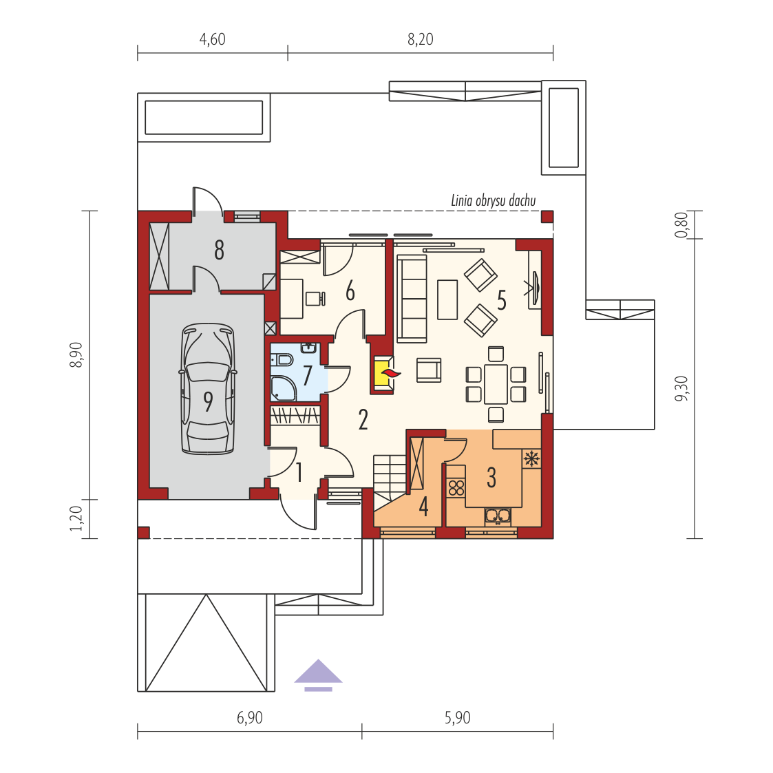 Kolekcja ECONOMIC - domy ładne i tanie w budowie. Charakterystyka: Dom parterowy z poddaszem użytkowym, niepodpiwniczony, z garażem jednostanowiskowymPrzeznaczenie: Dom dla 3-5-osobowej rodziny Technologia i konstrukcja:Ściany zewnętrzne: murowane, dwuwarstwowe, beton komórkowy 24 cm, ocieplenie wełna mineralna 12 cmStrop: międzypiętrowy gęstożebrowy TerivaDach: konstrukcja drewniana, ocieplenie wełna mineralna 30 cm, dachówka ceramiczna płaska Bergamo firmy RöbenInne: schody wewnętrzne drewniane Rozwiązania instalacyjne:Ogrzewanie: kocioł gazowy kondensacyjny, rozprowadzenie ciepła: grzejnikiWentylacja: grawitacyjna Wykończenie:Elewacje: tynk cienkowarstwowy mineralny w kolorze TO-PA001 z palety firmy Termo Organika, okładzina drewnianaStolarka: drewniana, PVC lub aluminiowaOtoczenie: system tarasowy ProDeck - deska kompozytowa Terra w kolorze złoty dąbOkna połaciowe: rozwiązania technologiczne i wyłaz dachowy firmy VELUXPobierz ekspercki poradnik VELUX i dowiedz się jak wybrać okna dachoweWersje - zapytaj o dostępność:- E4 G1 economic (wersja B) – inne wykończenie elewacji, dach z okapami- E4 G1 economic (wersja A) MULTI-COMFORT – wersja z rozwiązaniami materiałowo-technologicznymi Grupy Saint-Gobain- odbicie lustrzane do każdej wersji Istnieje techniczna możliwość:- podpiwniczenia budynku- wykonania budynku w technologii szkieletowej Atuty projektu okiem architekta: - Bryła sprzyjająca energooszczędności, zminimalizowane ryzyko występowania mostków termicznych - Okna o niskim współczynniku przenikania ciepła - Nowoczesna kompozycja elewacji - Ergonomiczny układ funkcjonalny z czytelnym podziałem stref - Reprezentacyjny salon z kominkiem z szerokimi przeszkleniami od strony ogrodu - Praktyczny gabinet - Komfortowa strefa nocna zaplanowana na poddaszu - Duża odrębna garderoba - Praktyczna spiżarnia przy kuchni - Zadaszony taras - Duże pomieszczenie kotłowni, które pozwala na zastosowanie dowolnego źródła ogrzewania