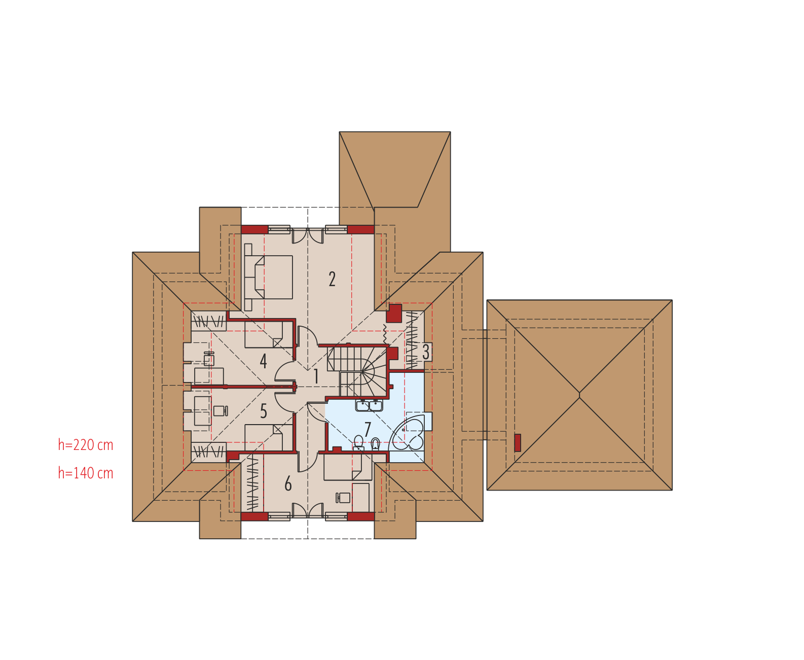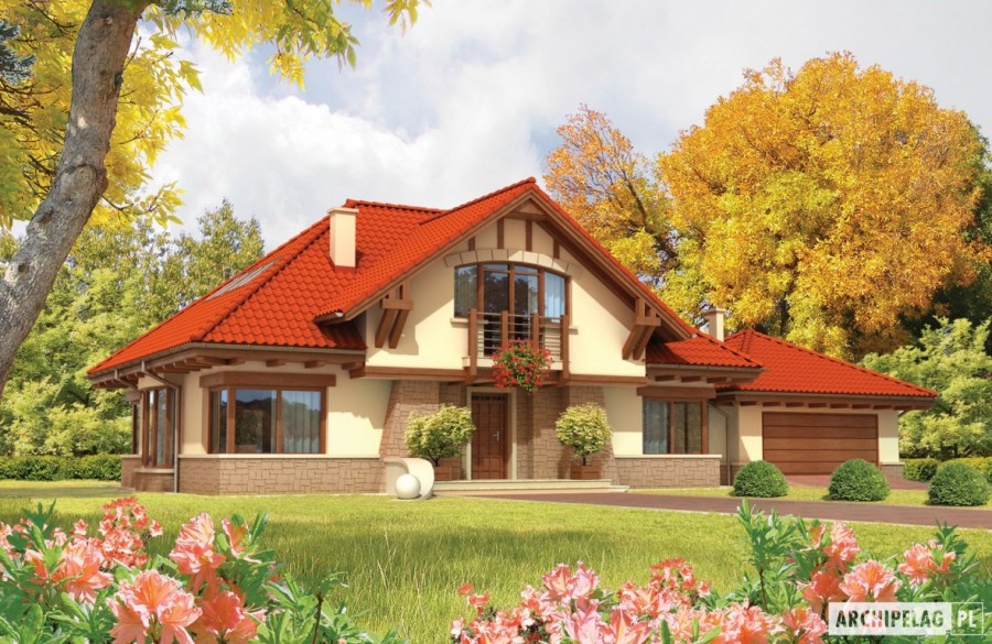 Charakterystyka: Dom parterowy z poddaszem użytkowym, niepodpiwniczony, z garażem dwustanowiskowym Przeznaczenie: Dom dla 4-5 osobowej rodziny Technologia i konstrukcja: Ściany zewnętrzne: murowane, Strop: gęstożebrowy Dach: konstrukcja drewniana, dachówka ceramiczna Inne: schody wewnętrzne drewnianeRozwiązania instalacyjne: Ogrzewanie: kocioł gazowy, rozprowadzenie ciepła: grzejniki Wentylacja: grawitacyjna Wykończenie: Elewacje: tynk mineralny oraz okładzina kamienna Stolarka: drewniana lub PCV Otoczenie: system tarasowy ProDeck - deska kompozytowa Terra w kolorze kasztanWersje - zapytaj o dostępność: - Edek – wersja bez garażu - Edek Mocca – inne wykończenie elewacji, bez garażu i z garażem dwustanowiskowym - Edek G2 01 – z piwnicą, inny układ strefy gospodarczo-technicznej parteru, z garażem dwustanowiskowym - Edward i Edward II – większa powierzchnia użytkowa – inne wymiary budynków, inny układ funkcji poddasza, inne kąty nachylenia dachu, różne wykończenia elewacji, bez garażu i z garażem dwustanowiskowym - Odbicie lustrzane dla wszystkich wersji Istnieje techniczna możliwość: - podpiwniczenia budynku