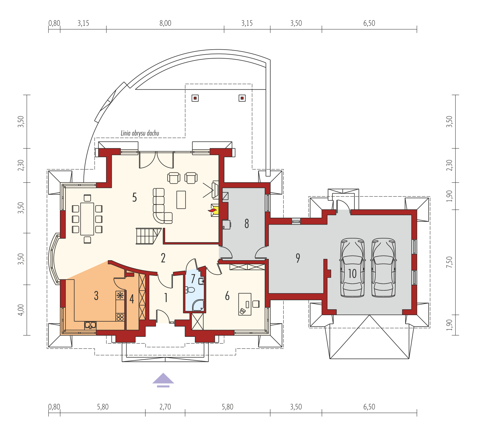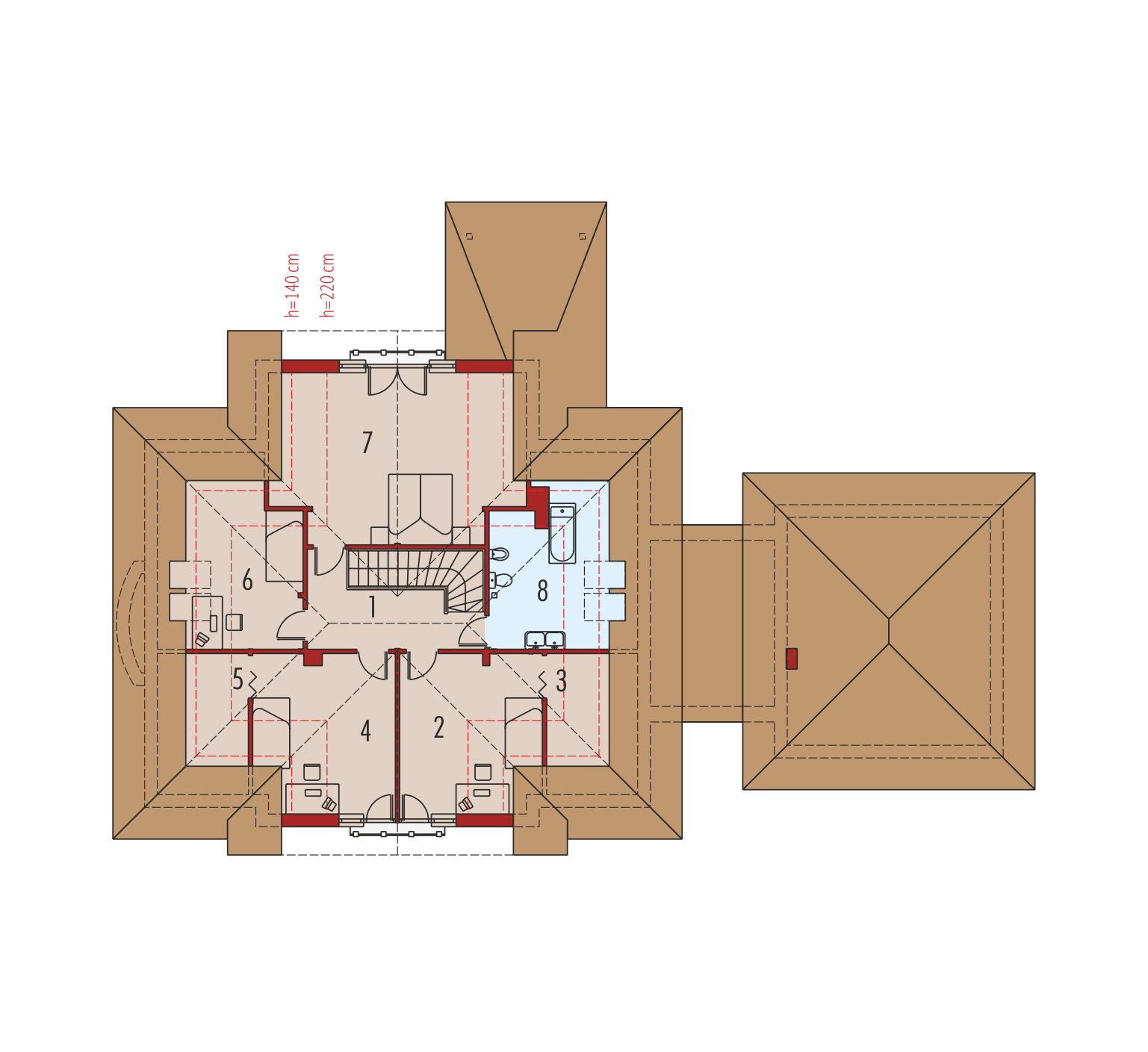 Charakterystyka: Dom parterowy z poddaszem użytkowym, niepodpiwniczony, z garażem dwustanowiskowym Przeznaczenie: Dom dla 5-6 osobowej rodzinyTechnologia i konstrukcja: Ściany zewnętrzne: murowane Strop: gęstożebrowy Dach: konstrukcja drewniana, dachówka ceramiczna Röben Inne: schody wewnętrzne drewnianeRozwiązania instalacyjne: Ogrzewanie: kocioł gazowy, rozprowadzenie ciepła: grzejniki Wentylacja: grawitacyjna Wykończenie: Elewacje: tynk struktruralny i okładzina kamienna Stolarka: drewniana lub PCVWersje - zapytaj o dostępność: - Edward – wersja bez garażu - Edward II – inne wykończenie elewacji, bez garażu i z garażem dwustanowiskowym - Edek, Edek Mocca – mniejsza powierzchnia użytkowa – inne wymiary budynków, inny układ funkcji poddasza, inne kąty nachylenia dachu, różne wykończenia elewacji, bez garażu i z garażem dwustanowiskowym - Edek G2 01 – z piwnicą, mniejsza powierzchnia użytkowa, inny układ strefy gospodarczo-technicznej parteru i funkcji poddasza, inne kąty nachylenia dachu, inne wykończenie elewacji, z garażem dwustanowiskowym - Odbicia lustrzane do wszystkich wersji Istnieje techniczna możliwość: - podpiwniczenia budynku