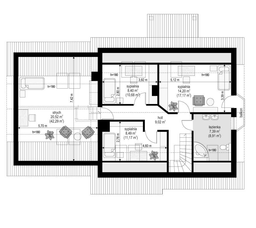 Projekt domu Bryza 2 stanowi wariantową wersję projektu Bryza. Od podstawowej wersji projektu odróżnia go powiększony, dwustanowiskowy garaż. Bryza 2 to nieduży domek dla 4- 5-osobowej rodziny, który można zaadoptować nawet na niewielką działkę. Prosta, łatwa w budowie bryła budynku została przekryta dwuspadowymi dachami. Projekt pozwala na połączenie dwóch domów w budynek bliźniaczy, stykający się garażami. Na powierzchni poniżej 140 m² zaplanowano trzy pokoje na poddaszu, salon i dodatkowy pokój na parterze. Na poddaszu domu, nad garażem, można zaadaptować strych na dodatkowe dwa pokoje. W projekcie domu Bryza 2 zaplanowano dwa pomieszczenia gospodarcze, dostępne z garażu. Dostępny jest również projekt w wersji odbicia lustrzanego. Zapraszamy do zapoznania się z pełną ofertą pracowni MG Projekt: Bryza, Bryza 3, Bryza 4, Bryza 5 (NF 40) , Bryza 6 (MDM) .