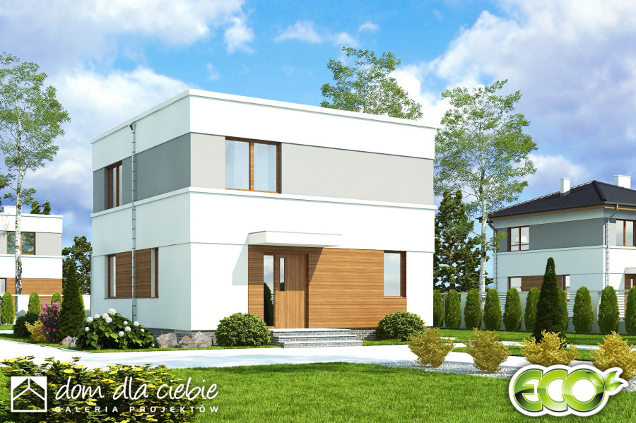 Projekt niewielkiego domu piętrowego Egon II z płaskim dachem.fundamenty: BETONOWE ściany zewnętrzne: POROTHERM+STYROPIAN TERMO ORGANIKA strop na parterem i piętrem: TERIVA elewacje: TYNK STRUKTURALNY pokrycie dachu: BITUMICZNE