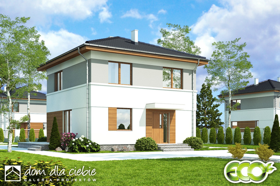 Projekt niewielkiego domu piętrowego Egon III.fundamenty: BETONOWE ściany zewnętrzne: POROTHERM+STYROPIAN TERMO ORGANIKA strop na parterem: TERIVA strop nad piętrem i konstrukcja dachu: wiązary prefabrykowane MITEK elewacje: TYNK STRUKTURALNY pokrycie dachu: DACHÓWKA CERAMICZNA