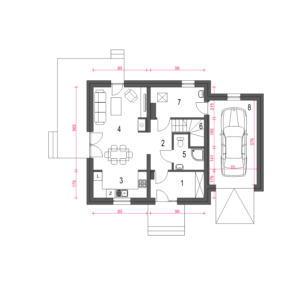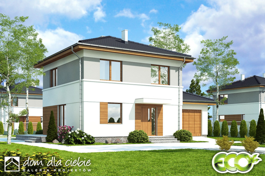 Projekt niewielkiego domu piętrowego Egon III z garażem.
