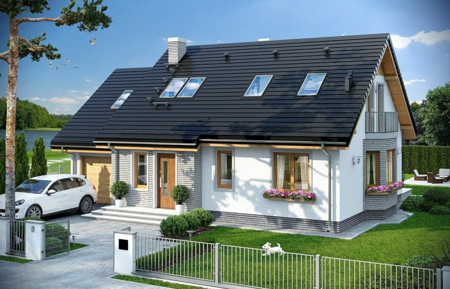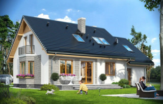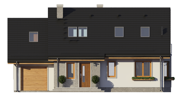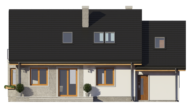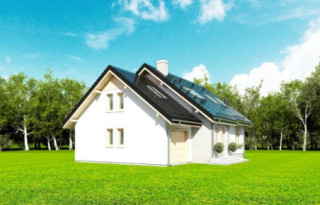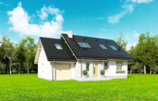 Projekt domu Bryza 5 (NF40) to kolejna odsłona popularnego projektu Bryza – tym razem w standardzie energooszczędnym NF40, dostosowanym do wymagań programu dopłat. Dom jest bardzo dobrze ocieplony, ma nowoczesne energooszczędne instalacje grzewcze i wentylacji mechanicznej z rekuperacją. Dzięki zwartej bryle i korzystnemu stosunkowi przegród zewnętrznych do kubatury, ogrzewanie domu będzie kosztowało 2-3 razy mniej niż w przeciętnym domu jednorodzinnym. „Bryza 5” jest domem przeznaczonym dla rodziny 4- 5-osobowej, parterowym z użytkowym poddaszem i dobudowaną do głównej bryły częścią garażową. Na parterze mieści się część dzienna, z salonem, kuchnią i holem, oraz dodatkowy pokój z łazienką. W części gospodarczej z kolei zaprojektowano garaż z kącikiem magazynowym, oraz kotłownię. Na poddaszu zaprojektowano trzy sypialnie z łazienką. Nad garażem znajduje się strych, który można zaadaptować na dodatkowe pomieszczenie. „Bryza 5” jest prostym, przez co niedrogim w budowie domem. A dzięki energooszczędnym rozwiązaniom i technologiom budynek będzie także tani w późniejszej eksploatacji. Projekt jest propozycją w sam raz dla praktycznie i nowocześnie myślących Inwestorów. Zapraszamy! Zapraszamy do zapoznania się z pełną ofertą pracowni MG Projekt: projekt domu Bryza, projekt domu Bryza 2, projekt domu Bryza 3, projekt domu Bryza 4, projekt domu Bryza 4 wariant B, projekt domu Bryza 6 (MDM). UWAGA! Projekt dostosowany do standardu NF40 w zakresie projektu architektoniczno-budowlanego. Podczas składania zamówienia na projekt domu Bryza 5 NF40 proszę o wpisywanie dodatkowych informacji w pole uwagi na formularzu - w jakiej miejscowości zlokalizowana jest działka oraz jak ustawiony jest budynek względem stron świata (np. elewacja frontowa od północy).