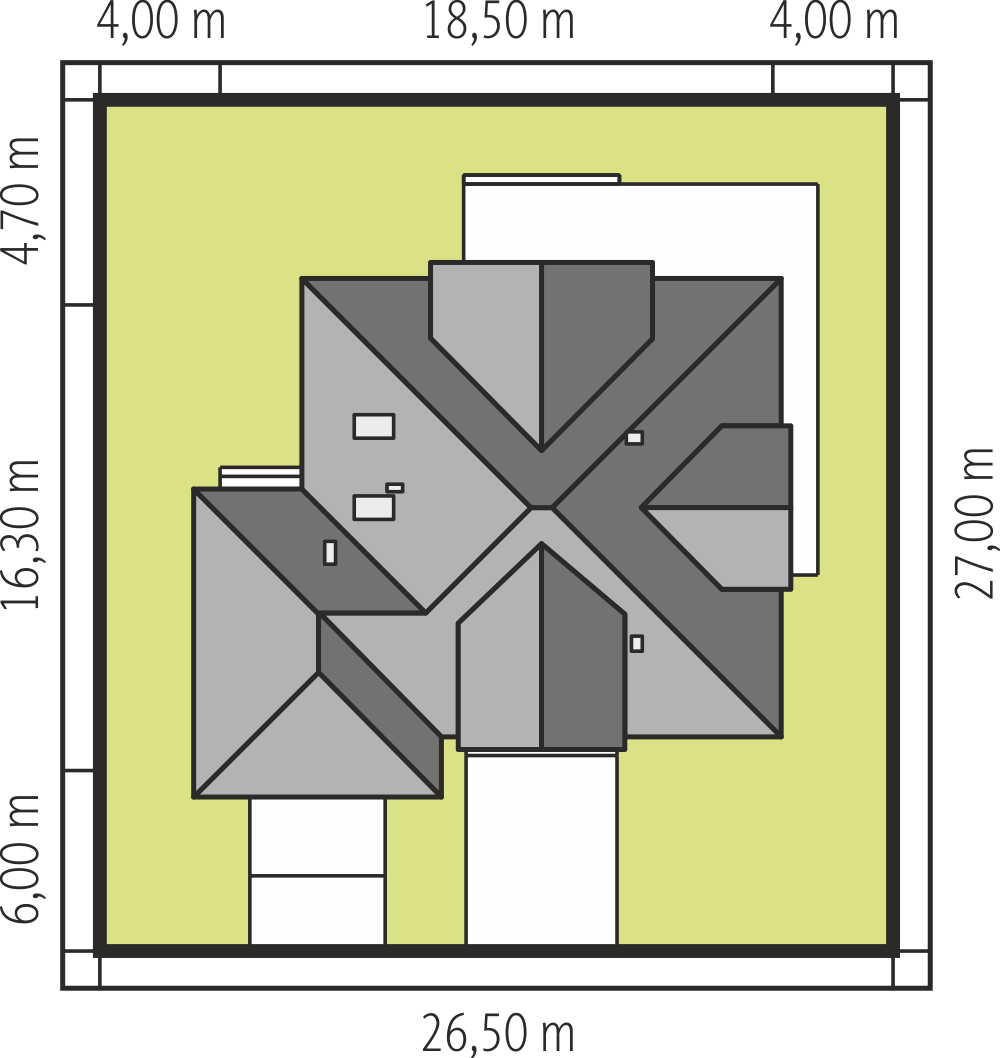 Niewielki, jednorodzinny dom parterowy, odpowiadający potrzebom 3 - 4-osobowej rodziny. Optymalny układ pomieszczeń został podzielony na dwie strefy: dzienną - kuchnia i salon z jadalnią oraz nocną: dwie sypialnie i łazienka.Ściany: 2-warstwowe - YTONG 36,5 cm + styropian Termo Organika, Stropy: System Stropowy TECHNOBETON, Dach: dachówka, kąt nachylenia 30°