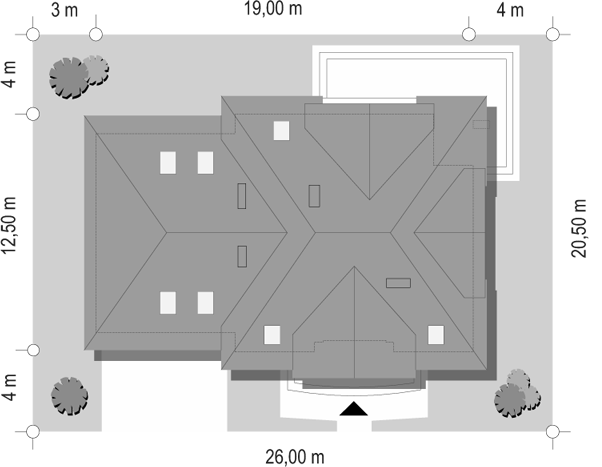 Niewielki, jednorodzinny dom parterowy, odpowiadający potrzebom 3 - 4-osobowej rodziny. Optymalny układ pomieszczeń został podzielony na dwie strefy: dzienną - kuchnia ze spiżarnią i salon z jadalnią, oraz nocną - dwie sypialnie i łazienka. W części gospodarczej budynku znajduje się kotłownia, której wymiary pozwalają na montaż kotła na każdy rodzaj paliwa.Ściany: 2-warstwowe - YTONG 36,5 cm + styropian Termo Organika, Stropy: z wiązarów dachowych firmy MITEK, Dach: dachówka, kąt nachylenia 25°