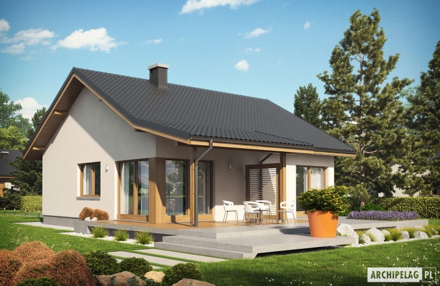 Charakterystyka: Dom parterowy, niepodpiwniczonyPrzeznaczenie: Dom dla 2-3-osobowej rodzinyTechnologia i konstrukcja: Ściany zewnętrzne: murowane, dwuwarstwowe, bloczek keramzytobetonowy BOX TERM firmy Termat 24 cm, ocieplenie styropian Termo Organika 20 cm Strop: gęstożebrowy Teriva, ocieplenie wełna mineralna firmy Isover 30 cm Dach: konstrukcja drewniana, dachówka ceramiczna lub cementowa. Więźba dachowa dostępna również w systemie prefabrykacji drewnianejRozwiązania instalacyjne:Ogrzewanie: kocioł gazowy kondensacyjny firmy Viessmann, rozprowadzenie ciepła: grzejniki firmy PurmoWentylacja: grawitacyjna OZE: kolektory słoneczne firmy Viessmann Dodatkowo: stacja uzdatniania wody firmy ViessmannWykończenie: Elewacje: tynk cienkowarstwowy mineralny w kolorze TO-PA004 z palety firmy Termo Organika oraz okładzina drewniana Stolarka: drewniana, PCV lub aluminiowa. Rolety zewnętrzne w systemie CleverBox firmy BeClever, drzwi wewnętrzne i wejściowe firmy Hörmann Otoczenie: system tarasowy ProDeck - deska kompozytowa Terra w kolorze orzech Wersje zapytaj o dostępność:- Elmo II – z garażem jedno- i dwustanowiskowym- Elmo – inna aranżacja parteru, z garażem jedno- i dwustanowiskowym- Odbicie lustrzane do każdej wersji Istnieje techniczna możliwość:- zbliźniaczenia lub wykonania domu dwurodzinnego Atuty projektu okiem architekta:- Bryła sprzyjająca energooszczędności, zminimalizowane ryzyko występowania mostków termicznych- Okna o niskim współczynniku przenikania ciepła- Tani w realizacji dach dwuspadowy- Elegancka kompozycja elewacji- Bardzo dobre parametry cieplne- Prosty i ergonomiczny układ funkcjonalny- Kuchnia z doświetloną jadalnią- Przestrzenny salon z kominkiem- Duże przeszklenia od strony ogrodu- Dwie wygodne sypialnie- Praktyczne pomieszczenie kotłowni z pralnią