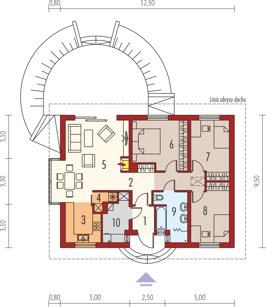 Charakterystyka: Dom parterowy, niepodpiwniczony Przeznaczenie: Dom dla 3-4 osobowej rodziny Technologia i konstrukcja: Ściany zewnętrzne: murowane Strop: gęstożebrowy Dach: konstrukcja drewniana, dachówka płaska lub inna o podobnych parametrach. Więźba dachowa dostępna również w systemie prefabrykacji drewnianej.Rozwiązania instalacyjne: Ogrzewanie: kocioł gazowy, rozprowadzenie ciepła: grzejniki Wentylacja: grawitacyjna Wykończenie: Elewacje: tynk mineralny i okładzina kamienna Stolarka: drewniana lub PCV, drzwi wejściowe firmy HörmannWersje w serii Erin - zapytaj o dostępność: - Erin – wersja podstawowa - Erin II – dom bez wykusza w jadalni - Erin II reco – energooszczędne instalacje firmy Vaillant: pompa ciepła, wentylacja mechaniczna z rekuperacją, system fotowoltaiczny oraz ogrzewanie podłogowe firmy Purmo - Erin III – dom bez wykusza w jadalni, podobny układ funkcjonalny – przejście z domu do garażu - Erin IV (wiązary) – dom bez wykusza w jadalni, system suchej zabudowy ścian działowych Rigips, wiązary prefabrykowane - system płytki kolczastej Mitek - wszystkie wersje o podobnym układzie funkcji i takim samym wykończeniu elewacji - wszystkie wersje z trzema wariantami garaży: bez garażu, z garażem jedno- i dwustanowiskowym - odbicie lustrzane do każdej wersjiWszystkie wersje domów możliwe w dwóch standardach/wariantach instalacyjnych: - ENERGO: kocioł gazowy kondensacyjny, grzejniki, wentylacja grawitacyjna, OZE: kolektory słoneczne - ENERGO PLUS: pompa ciepła, ogrzewanie podłogowe, wentylacja mechaniczna, OZE: panele fotowoltaiczne Istnieją techniczne możliwości wykonania zmian: - podpiwniczenia budynku - wykonania budynku w technologii szkieletowej - dokonania zmian funkcjonalnych wg indywidualnych wymagań