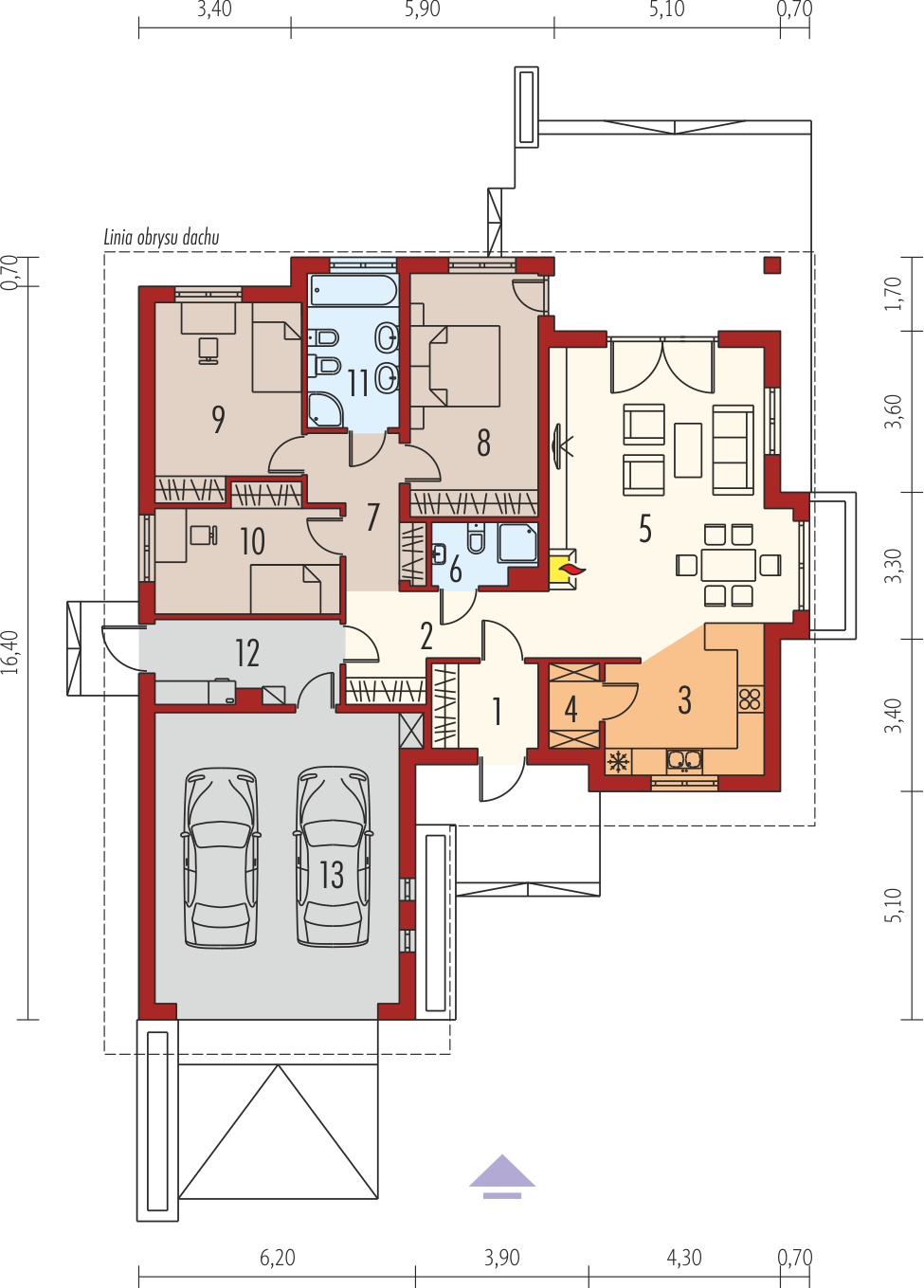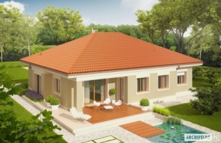 Charakterystyka: Dom parterowy, niepodpiwniczony, z garażem dwustanowiskowym Przeznaczenie: Dom dla 3-4 osobowej rodziny Technologia i konstrukcja: Ściany zewnętrzne: murowane, dwuwarstwowe, pustak ceramiczny 24 cm, ocieplenie wełna mineralna 20 cmŚciany wewnętrzne: nośne i działowe pustak ceramiczny 24 cm i 12 cm Strop: gęstożebrowy Teriva, ocieplenie wełna mineralna Isover 30 cm Dach: konstrukcja drewniana, dachówka ceramiczna RöbenRozwiązania instalacyjne:Ogrzewanie: kocioł gazowy kondensacyjny firmy Viessmann, rozprowadzenie ciepła: grzejniki firmy Purmo Wentylacja: grawitacyjna OZE: kolektory słoneczne firmy Viessmann Dodatkowo: stacja uzdatniania wody firmy ViessmannWykończenie: Elewacje: tynk cienkowarstwowy, mineralny i okładzina drewniana Stolarka: drewniana, lub PCV, drzwi wewnętrzne i wejściowe oraz brama garażowa firmy HörmannOtoczenie: kostka betonowa i płyty tarasowe firmy Libet, system tarasowy ProDeck Wersje - zapytaj o dostępność: - Eris G2 (wersja A) – z innym wykończeniem elewacji - Eris G2 (wersja C) – z innym wykończeniem elewacji - Odbicia lustrzane do wszystkich wersjiIstnieje techniczna możliwość: - podpiwniczenia budynku