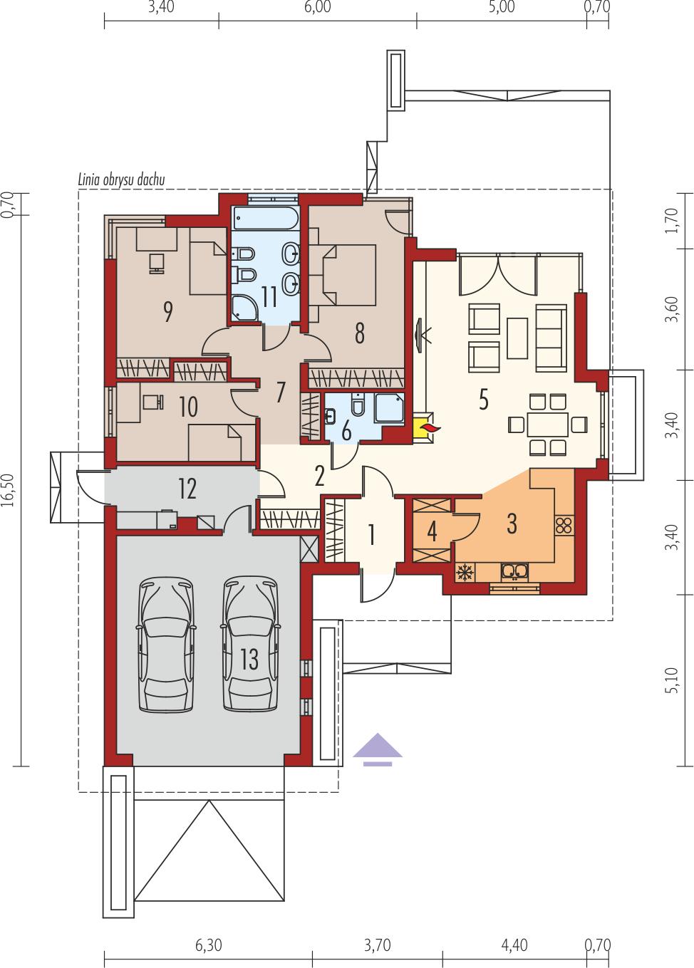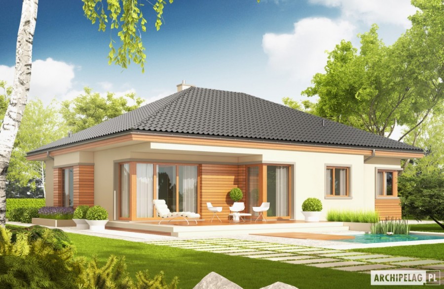 Charakterystyka: Dom parterowy, niepodpiwniczony, z garażem dwustanowiskowymPrzeznaczenie: Dom dla 3-4-osobowej rodziny Technologia i konstrukcja:Ściany zewnętrzne: murowane, dwuwarstwowe, pustaki ceramiczne 24 cm, ocieplenie wełna mineralna 20 cmStrop: gęstożebrowy Teriva, ocieplenie wełna mineralna 30 cmDach: konstrukcja drewniana, dachówka ceramiczna lub cementowa, więźba dachowa dostępna również w systemie prefabrykacji drewnianej Rozwiązania instalacyjne:Ogrzewanie: kocioł gazowy kondensacyjny, rozprowadzenie ciepła: grzejnikiWentylacja: grawitacyjna Wykończenie:Elewacje: tynk cienkowarstwowy mineralny w kolorze kremowym, okładzina drewnianaStolarka: drewniana, PVC lub aluminiowa, drzwi wewnętrzne i wejściowe oraz brama garażowa firmy HörmannOtoczenie: system tarasowy ProDeck - deska kompozytowa Terra w kolorze orzechWersje - zapytaj o dostępność:- Eris G2 (wersja A) – technologia ścian trójwarstwowych, inne wykończenie elewacji- Eris G2 (wersja B) – inne wykończenie elewacji- Eris G2 (wersja C) MULTI-COMFORT – dom z rozwiązaniami materiałowo-technologicznymi Grupy Saint-Gobain- Eris II G2 (wersja C) – dom z systemem suchej zabudowy ścian działowych i sufitów podwieszonych firmy Rigips, wiązary dachowe prefabrykowane, inne wykończenie elewacji Istnieje techniczna możliwość:- podpiwniczenia budynku- wykonania budynku w technologii szkieletowej