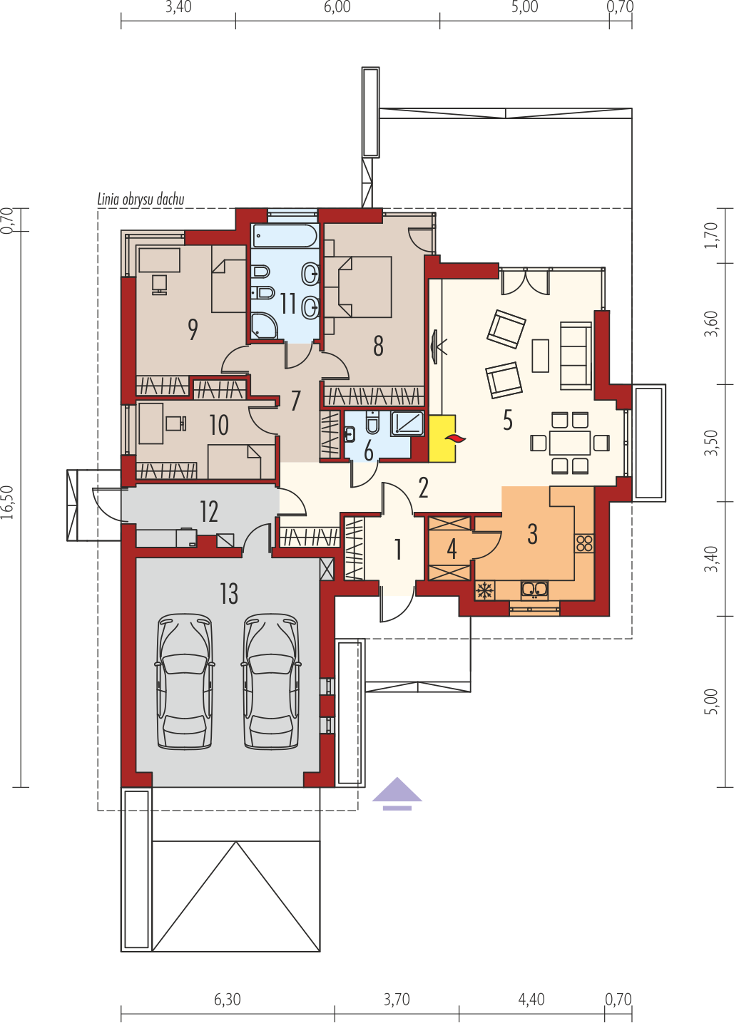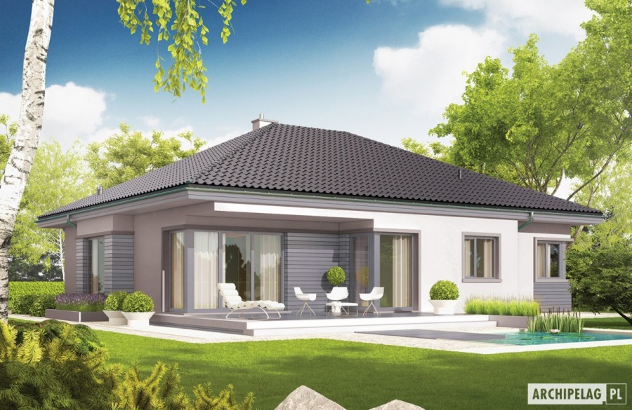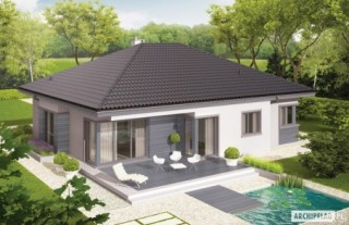 W projekcie zastosowano systemy zabudowy ścian działowych i sufitów podwieszanych Rigips. Więźba dachowa w systemie dachu prefabrykowanego w systemie płytki kolczastej MITEK.Charakterystyka: dom parterowy, niepodpiwniczony, z garażem dwustanowiskowymPrzeznaczenie: dom dla 3-4-osobowej rodzinyTechnologia i konstrukcja:Fundamenty: ławy, bloczki betonowe 24 cm, ocieplenie styropian 15 cmŚciany zewnętrzne: murowane, dwuwarstwowe, beton komórkowy 24 cm, ocieplenie 20 cmŚciany wewnętrzne: ścianki działowe w systemie suchej zabudowy Rigips 12 cmPodłoga na gruncie: płyta betonowa, ocieplenie styropian 15 cmStrop i stropodach nad garażem: pas dolny wiązara stanowi konstrukcję, sufit podwieszony RigipsDach: wiązary drewniane prefabrykowane, wełna mineralna 30 cm, dachówka cementowa IBFRozwiązania instalacyjne: Ogrzewanie: kocioł gazowy, rozprowadzenie ciepła: grzejniki Wentylacja: grawitacyjna Wykończenie:Elewacja: tynk cienkowarstwowy mineralny i okładzina drewnianaStolarka: drewniana, PCV lub aluminiowa, drzwi wewnętrzne i wejściowe oraz brama garażowa firmy HörmannWersje - zapytaj o dostępność:– Eris II (wersja C) – bez garażu– Eris G2 (wersja C) – taka sama funkcja, ściany nośne i działowe murowane, tradycyjna więźba dachowa, bez garażu, z garażem dwustanowiskowym– Eris G2 (wersja A) – ściany nośne i działowe murowane, ściany zewnętrzne trójwarstwowe, tradycyjna więźba dachowa, inne wykończenie elewacji, bez garażu i z garażem dwustanowiskowym– Eris G2 (wersja B) – ściany nośne i działowe murowane, tradycyjna więźba dachowa, inne wykończenie elewacji, bez garażu i z garażem dwustanowiskowym– Eris G2 (wersja C) MULTI-COMFORT – rozwiązania technologiczne Grupy Saint-Gobain, ściany nośne i działowe murowane, tradycyjna więźba dachowa, bez garażu i z garażem dwustanowiskowymdopisek na niebiesko- Odbicie lustrzane do każdej wersjiIstnieje techniczna możliwość:- podpiwniczenia budynkuAtuty projektu okiem architekta:- Szybkie w montażu prefabrykowane elementy dachu z gwarancją jakości, stanowiące jednocześnie konstrukcję stropu i eliminujące konieczność stawiania ścian nośnych oraz fundamentów pod nimi- Ścianki wewnętrzne w technologii lekkiej umożliwiające dowolną aranżację wnętrza- Ergonomiczny i czytelny rozkład pomieszczeń oddzielający strefę dzienną od nocnej- Komfortowy, dobrze nasłoneczniony salon, z bezpośrednim wyjściem na taras i do ogrodu- Wygodnie rozplanowana kuchnia z poręczną spiżarnią- Atrakcyjny taras z podcieniem- Funkcjonalne szafy wnękowe w korytarzu, wspomagające przestrzeń gospodarczą- Kotłownia z pralnią i wyjściem na zewnątrz, łącząca garaż z mieszkalną częścią domu- Garaż odizolowany termicznie od ogrzewanych pomieszczeń budynku