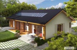Charakterystyka: Dom parterowy, niepodpiwniczony, z garażem jednostanowiskowym Przeznaczenie: Dom dla 3-4 osobowej rodziny Technologia i konstrukcja: Ściany zewnętrzne: murowane Strop: międzypiętrowy gęstożebrowy Dach: konstrukcja drewniana, ocieplenie wełna mineralna, dachówka cementowa IBF. Więźba dachowa dostępna również w systemie prefabrykacji drewnianej. Rozwiązania instalacyjne: Ogrzewanie: kocioł gazowy, rozprowadzenie ciepła: grzejniki Wentylacja: grawitacyjna Wykończenie: Elewacje: tynk mineralny, okładzina kamienna i drewniana. Cokół kamienny Stolarka: drewniana lub PCV, drzwi wejściowe i brama garażowa firmy Hörmann. Rolety zewnętrzne naokienne w systemie CleverBox firmy BeClever.Wersje - zapytaj o dostępność: - Eryk - podobny układ funkcjonalny, bez garażu - Eryk (z wiatą) - podobny układ funkcjonalny, z wiatą samochodową - Eryk II - podobny układ funkcjonalny, różne wersje garaży - Eryk III - system suchej zabudowy ścian działowych Rigips, wiązary prefabrykowane, podobny układ funkcjonalny, standard ociepleń ENERGO, bez garażu i z garażem jednostanowiskowym - Eryk IV ECONOMIC - taki sam układ funkcjonalny, standard ociepleń ENERGO, bez garażu i z garażem jednostanowiskowym - Eryk MULTI-COMFORT - dom z rozwiązaniami materiałowo-technologicznymi Grupy Saint-Gobain, taki sam układ funkcjonalny, bez garażu i z garażem jednostanowiskowym - Eryk ENERGO PLUS - instalacje energooszczędne: pompa ciepła, ogrzewanie podłogowe, wentylacja mechaniczna z rekuperacją firmy Zehnder, system solarny, podobny układ funkcjonalny, standard ociepleń ENERGO, bez garażu i z garażem jednostanowiskowym Wersje z dachem o kącie nachylenia 30°: - Eryk (30 stopni), Eryk z wiatą (30 stopni) - Eryk G1 (30 stopni), Eryk G1 MULTI-COMFORT (30 stopni) - Eryk II G1 (30 stopni)- każda wersja z inną propozycją wykończenia elewacji - odbicie lustrzane do każdej wersjiIstnieje techniczna możliwość: - podpiwniczenia - zbliźniaczenia - zmiany kąta nachylenia dachu do 30° oraz adaptacji poddasza na strych
