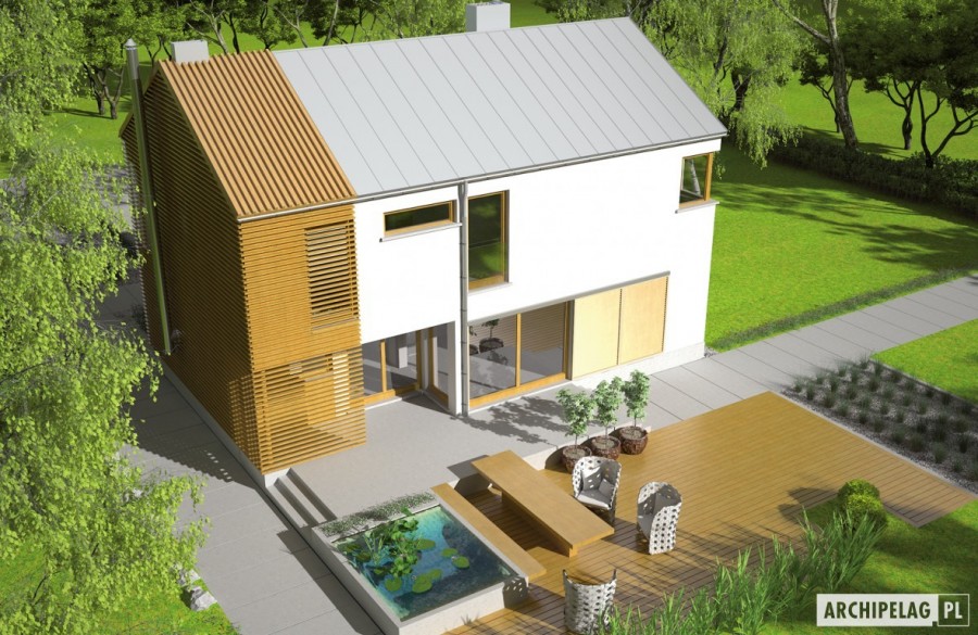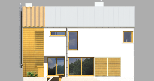 Charakterystyka: Dom piętrowy, niepodpiwniczonyPrzeznaczenie: Dom dla 3-4-osobowej rodziny Technologia i konstrukcja:Ściany zewnętrzne: murowane, dwuwarstwowe, beton komórkowy firmy H+H 24 cm, ocieplenie styropian Termo Organika 20 cmŚciany wewnętrzne: nośne i działowe murowane, beton komórkowy firmy H+H 24 cm i 12 cmStrop: międzypiętrowy gęstożebrowy Teriva, nad piętrem strop drewniany: ocieplenie wełna mineralna Isover 30 cmDach: konstrukcja drewniana, krycie dachu: blacha na rąbek stojący, więźba dachowa dostępna również w prefabrykacji drewnianej w systemie płytki kolczastej MitekInne: schody wewnętrzne drewniane Wykończenie:Elewacje: tynk cienkowarstwowy mineralny w kolorze białym TO-PA001 i jasnoszarym TO-GY010 z palety firmy Termo Organika, lamele drewniane na ruszcie, żaluzje drewnianeStolarka: drewniana, PVC lub aluminiowa, drzwi tarasowe podnoszono-przesuwne typu HS aluminiowo-drewniane Innowiev firmy Fakro, drzwi wejściowe firmy HörmannOkna dachowe: wyłaz dachowy i schody strychowe firmy FAKROOtoczenie: kostka betonowa i płyty tarasowe firmy Libet, system tarasowy ProDeck - deska kompozytowa Terra w kolorze orzech Rozwiązania instalacyjne: Ogrzewanie: kocioł gazowy kondensacyjny firmy Viessmann, rozprowadzenie ciepła: grzejniki Wentylacja: grawitacyjna OZE: kolektory słoneczne Wersje - zapytaj o dostępność: - EX 1 ENERGO PLUS – instalacje energooszczędne: pompa ciepła, ogrzewanie podłogowe, wentylacja mechaniczna, OZE: panele fotowoltaiczne - odbicie lustrzane do każdej wersjiWszystkie wersje domów możliwe w dwóch standardach/wariantach instalacyjnych: - ENERGO: kocioł gazowy kondensacyjny, grzejniki, wentylacja grawitacyjna, kolektory słoneczne - ENERGO PLUS: pompa ciepła, ogrzewanie podłogowe, wentylacja mechaniczna, dodatkowo system solarny lub panele fotowoltaiczne Istnieją techniczne możliwości wykonania zmian: - podpiwniczenia budynku - wykonania budynku w technologii szkieletowej - dokonania zmian funkcjonalnych wg indywidualnych wymagań