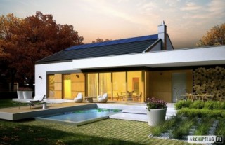 Projekty z serii EX soft wyposażono w standardowy zestaw instalacji: wentylację grawitacyjną i piec gazowy.Charakterystyka: Dom parterowy, niepodpiwniczony, z garażem jednostanowiskowymPrzeznaczenie: Dom dla 2-4-osobowej rodziny Technologia i konstrukcja:Ściany zewnętrzne: murowane, dwuwarstwowe, pustaki ceramiczne 24 cm, ocieplenie styropian Termo Organika 20 cmŚciany wewnętrzne: nośne i działowe murowane, pustaki ceramiczne 24 cm i 12 cmStrop i stropodach nad garażem: gęstożebrowy Teriva, stropodach pełny, ocieplenie wełna mineralna 30 cmDach: konstrukcja drewniana, dachówka ceramiczna płaska firmy Röben, więźba dachowa dostępna również w systemie prefabrykacji drewnianej Rozwiązania instalacyjne:Ogrzewanie: kocioł gazowy kondensacyjny, rozprowadzenie ciepła: grzejnikiWentylacja: grawitacyjna Wykończenie:Elewacje: tynk cienkowarstwowy mineralny, okładzina drewnianaStolarka: drewniana, PVC lub aluminiowa, drzwi wejściowe i brama garażowa firmy HörmannWersje - zapytaj o dostępność:- EX 11 G2 (wersja A,B) soft – taki sam układ funkcjonalny, inne wykończenie elewacji- EX 11 G2 (wersja D) soft – podobny układ funkcjonalny, inne wykończenie elewacji- EX 11 G2 (wersja A,B,C) ENERGO PLUS – taki sam układ funkcjonalny, energooszczędne instalacje: pompa ciepła, wentylacja mechaniczna z rekuperacją, system solarny, inne wykończenie elewacji- EX 11 G2 (wersja D) ENERGO PLUS – podobny układ funkcjonalny, energooszczędne instalacje: pompa ciepła, wentylacja mechaniczna z rekuperacją, system solarny, inne wykończenie elewacji- EX 11 G2 (wersja D) MULTI-COMFORT – podobny układ funkcjonalny, dom z rozwiązaniami materiałowo-technologicznymi Grupy Saint-Gobain, inne wykończenie elewacji- odbicie lustrzane do każdej wersji Istnieje techniczna możliwość:- podpiwniczenia budynku- zmiany kąta nachylenia dachu do 30º oraz adaptacji poddasza na strych- zbliźniaczenia lub wykonania domu dwulokalowego- wykonania budynku w technologii szkieletowej