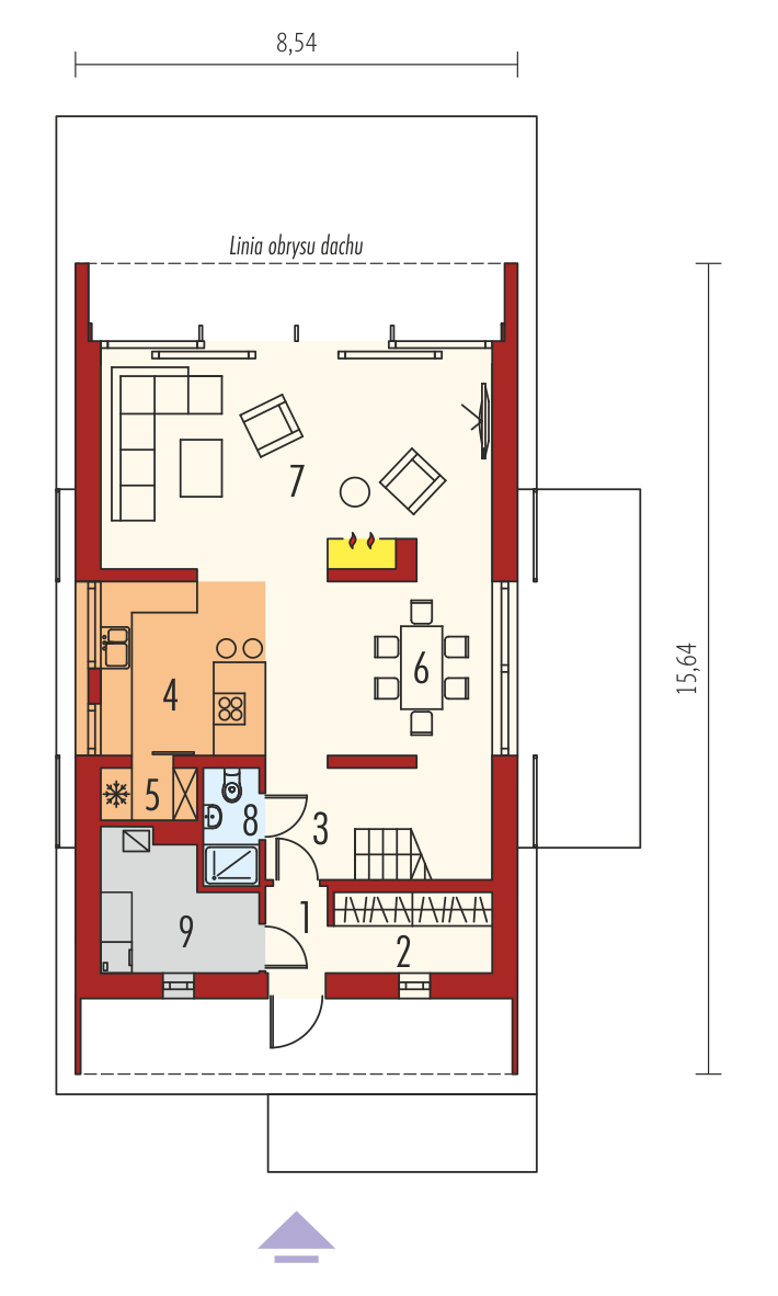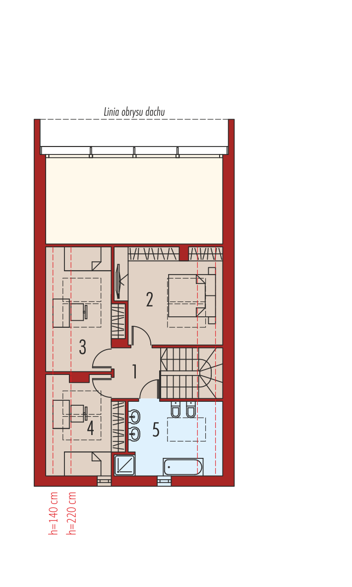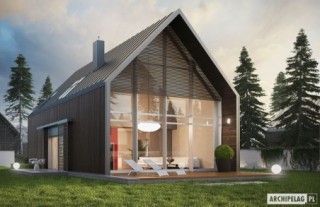 Projekty z serii EX soft wyposażono w standardowy zestaw instalacji: wentylację grawitacyjną i piec gazowy. Charakterystyka: dom parterowy z poddaszem użytkowym, niepodpiwniczonyPrzeznaczenie: dom dla 4-osobowej rodzinyTechnologia i konstrukcja:Fundamenty: ławy, bloczki betonowe 24 cm, ocieplenie styropian 15 cmŚciany zewnętrzne: murowane, dwuwarstwowe, beton komórkowy firmy Solbet 24 cm, ocieplenie 20 cmŚciany wewnętrzne: murowane, cegła wapienno-piaskowa, ściany nośne firmy Solbet 24 cm, ścianki działowe 12 cmPodłoga na gruncie: płyta betonowa, ocieplenie styropian 15 cmStrop i stropodach nad garażem: strop międzypiętrowy gęstożebrowy TerivaDach: konstrukcja drewniana, ocieplenie wełna mineralna 30 cm, blacha na rąbek stojący Classic firmy RuukkiRozwiązania instalacyjne: Ogrzewanie: kocioł gazowy, rozprowadzenie ciepła: grzejniki Wentylacja: grawitacyjna Wykończenie:Elewacja: tynk cienkowarstwowy mineralny i okładzina drewnianaStolarka: drewniana, PCV lub aluminiowa, drzwi wejściowe firmy HörmannOkna połaciowe: rozwiązania technologiczne firmy FakroInne: zewnętrzne drewniane żaluzje przesuwneOtoczenie: system tarasowy ProDeck - deska kompozytowa Terra w kolorze złoty dąbDostępne wersje:- Odbicie lustrzane Istnieje możliwość:- podpiwniczenia budynku Atuty projektu okiem architekta:- Zwarta bryła sprzyjająca energooszczędności- Bardzo dobre parametry cieplne- Nowoczesna interpretacja klasycznej bryły domu- Zjawiskowa kompozycja elewacji – połączenie drewnianej okładziny i dużych przeszkleń- Kuchnia z praktyczną spiżarnią- Reprezentacyjny salon z kominkiem oferujący wiele możliwości aranżacji- Wygodna strefa nocna zaplanowana na poddaszu- Funkcjonalne szafy wnękowe- Duże przeszklenia od strony ogrodu oraz w jadalni z widokiem na ogród- Żaluzje zewnętrzne przesuwne jako osłona przed przegrzewaniem w upalne dni- Wygodne zadaszenie nad wejściem do budynku jako osłona przed wiatrem i śniegiem- Duże pomieszczenie kotłowni pozwala na zastosowanie dowolnego źródła ogrzewania