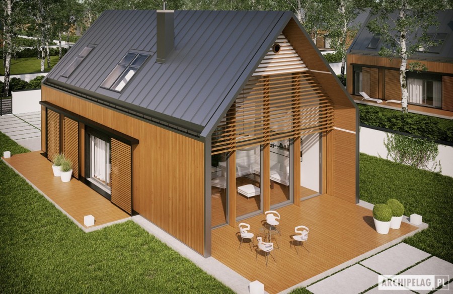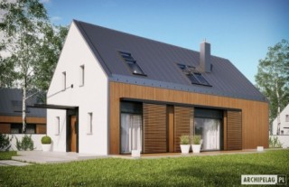 Projekty z serii EX soft wyposażono w standardowy zestaw instalacji: wentylację grawitacyjną i kocioł gazowy.Charakterystyka: dom parterowy z poddaszem użytkowym, niepodpiwniczonyPrzeznaczenie: dom dla 4-5-osobowej rodzinyTechnologia i wykończenie:Fundamenty: ławy, bloczki betonowe 24 cm, ocieplenie styropian 15 cmŚciany zewnętrzne: murowane, dwuwarstwowe, beton komórkowy Solbet 24 cm, ocieplenie 20 cmŚciany wewnętrzne: murowane, cegła wapienno-piaskowa, ściany nośne Solbet 24 cm, ścianki działowe Solbet 12 cmPodłoga na gruncie: płyta betonowa, ocieplenie styropian 15 cmStrop i stropodach nad garażem: strop międzypiętrowy gęstożebrowy TerivaDach: konstrukcja drewniana, ocieplenie wełna mineralna 30 cm, blacha na rąbek stojący Classic firmy RuukkiRozwiązania instalacyjne: Ogrzewanie: kocioł gazowy, rozprowadzenie ciepła: grzejniki Wentylacja: grawitacyjna Wykończenie:Elewacja: tynk cienkowarstwowy mineralny i okładzina drewnianaStolarka: drewniana lub aluminiowa, ślusarka - fasada aluminiowaOkna połaciowe: rozwiązania technologiczne firmy FAKROInne: zewnętrzne drewniane żaluzje przesuwneOtoczenie: system tarasowy ProDeck - deska kompozytowa Terra w kolorze złoty dąbDostępne wersje:- Odbicie lustrzane Istnieje możliwość:- podpiwniczenia budynku Atuty projektu okiem architekta:- Zwarta bryła sprzyjająca energooszczędności- Bardzo dobre parametry cieplne- Efektowna, nowoczesna kompozycja elewacji- Modne, wielkoformatowe przeszklenia od strony ogrodu oraz w jadalni z widokiem na ogródek- Kuchnia z praktyczną spiżarnią- Reprezentacyjny salon z kominkiem oferujący wiele możliwości aranżacji- Wygodna strefa nocna zaplanowana na poddaszu- Funkcjonalne szafy wnękowe- Żaluzje zewnętrzne przesuwne jako osłona przed przegrzewaniem w upalne dni- Duże pomieszczenie techniczne pozwala na zastosowanie dowolnego źródła ogrzewania