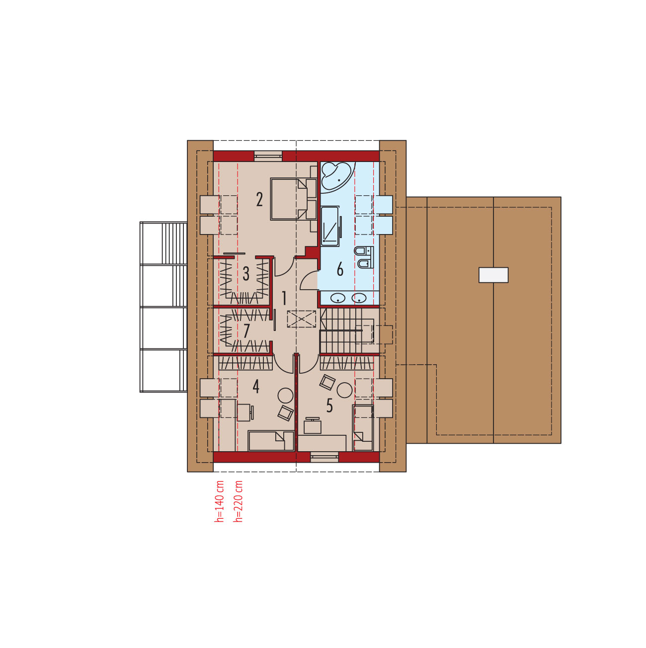 Charakterystyka: dom parterowy z poddaszem użytkowym, niepodpiwniczony, z garażem jednostanowiskowym Przeznaczenie: dom dla 3-5-osobowej rodzinyTechnologia i konstrukcja: Ściany zewnętrzne: murowane, dwuwarstwowe, beton komórkowy firmy Solbet 24 cm, ocieplenie styropian Termo Organika 18/22 cm Ściany wewnętrzne: nośne i działowe murowane, beton komórkowy firmy Solbet 24cm i 12cm Strop i stropodach nad garażem: strop międzypiętrowy gęstożebrowy Teriva Dach: konstrukcja drewniana, ocieplenie wełna mineralna Isover 30 cm, dachówka ceramiczna płaska Bergamo firmy RöbenSchody: schody wewnętrzne drewnianeInne: pergola stalowa lub drewniana z roletami, dom spełnia standardy Grupy Saint-Gobain: marka Isover, Rigips i Weber zapewniają najwyższą jakość wbudowanych produktów: okładziny ścienne i sufitowe, paroizolacje, systemy podłogowe, zaprawy, kleje, hydroizolacjeRozwiązania instalacyjne energooszczędne: Ogrzewanie: kocioł gazowy kondensacyjny firmy Viessmann, rozprowadzenie ciepła: grzejniki firmy Purmo Wentylacja: mechaniczna nawiewno-wywiewna z rekuperacją firmy ViessmannOZE: kolektory słoneczne firmy ViessmannWykończenie: Elewacja: tynk cienkowarstwowy mineralny Terom Organika, okładzina z desek włóknocementowych Cedral, okładzina z płytek kamiennych Stolarka: drewniana, PCV lub aluminiowa, okna tarasowe typu HS, rolety zewnętrzne QuadBox firmy BeClever Okna połaciowe: rozwiązania technologiczne firmy VeluxWersje w serii EX 16 - zapytaj o dostępność:- EX 16 ENERGO PLUS reco – wersja podstawowa, instalacje energooszczędne firmy Vaillant: pompa ciepła, wentylacja mechaniczna z rekuperacją, system fotowoltaiczny oraz ogrzewanie podłogowe firmy Purmo- EX 16 SOFT – wersja ze standardowymi instalacjami: kocioł gazowy, wentylacja grawitacyjna; kolektory słoneczne- EX 16 G1 MULTI-COMFORT – wersja z instalacjami: kocioł gazowy kondensacyjny, wentylacja mechaniczna z rekuperacją, kolektory słoneczne; rozwiązania technologiczno-materiałowe Grupy Saint-Gobain: Isover, Weber, Rigips; garaż jednostanowiskowy, inne wykończenie elewacji- EX 16 II G1 – podobny układ funkcjonalny, inne wykończenie elewacji, wersja z instalacjami: kocioł gazowy kondensacyjny, wentylacja mechaniczna z rekuperacją, kolektory słoneczne- odbicie lustrzane do każdej wersjiWszystkie wersje domów możliwe w dwóch standardach/wariantach instalacyjnych: - ENERGO: kocioł gazowy kondensacyjny, grzejniki, wentylacja grawitacyjna, OZE: kolektory słoneczne - ENERGO PLUS: pompa ciepła, ogrzewanie podłogowe, wentylacja mechaniczna, OZE: panele fotowoltaiczne Istnieją techniczne możliwości wykonania zmian: - podpiwniczenia budynku - wykonania budynku w technologii szkieletowej - dokonania zmian funkcjonalnych wg indywidualnych wymagań