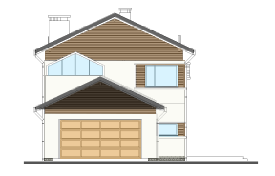 Wariant domu z przesuniętym salonem, gabinetem na parterze + zmianą lokalizacji i kształtu podcienia, taras narożny w nowym miejscu, spiżarka przy kuchni, zmiana kąta nachylenia dachu na 25 stopni,
