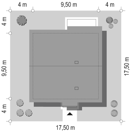 Jeśli posiadamy dużą działkę i potrzebujemy dwóch stanowisk w garażu, to projekt Faun 2G jest idealnym rozwiązaniem. Jest do wersja dwugarażowa projektu Faun. Bryła budynku jest bardzo urozmaicona – wejście do domu jest osadzone w delikatnym wykuszu; wykusz znajduje się także na bocznej ścianie, natomiast z tyłu domu gabinet oraz pomieszczenie techniczne również są wysunięte poza bryłę budynku. Zadaszony wjazd zdobią dwa filary. Poza tym poddasze wzbogacono o lukarny i balkon. Warto zwrócić uwagę na powiększoną powierzchnię poddasza. Sypialnia rodziców wyposażona została w garderobę i dużą indywidualną łazienkę oraz została połączona z gabinetem. Może więc tworzyć bardzo przestronną, zaciszną przystań dla małżeństwa.