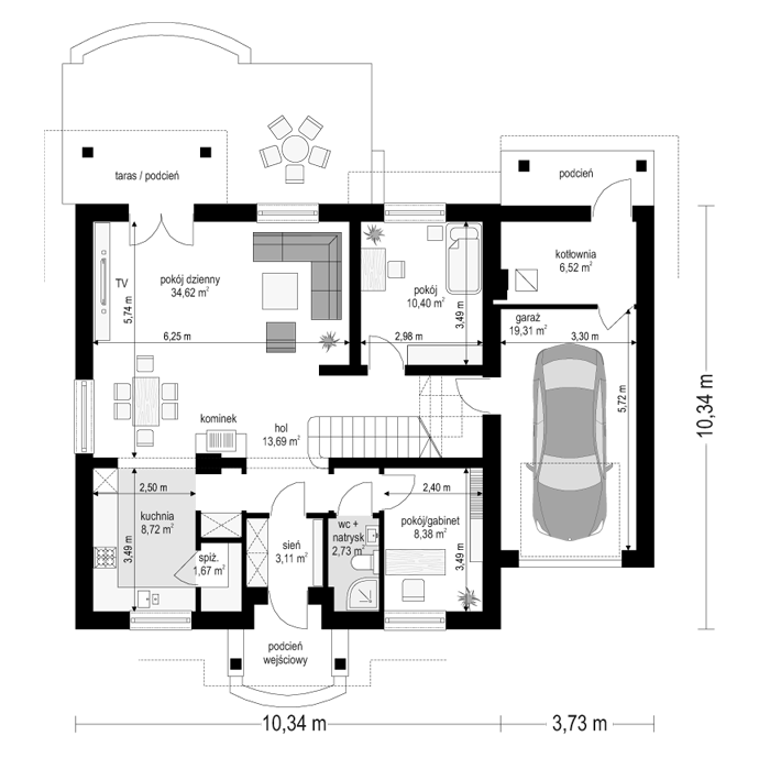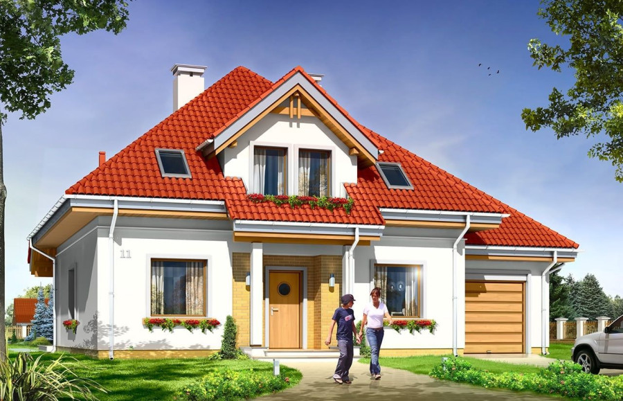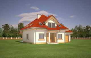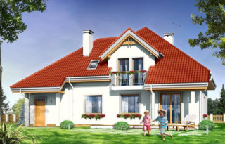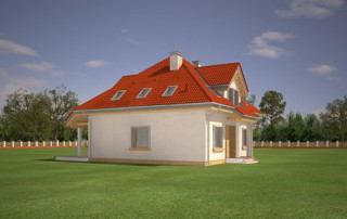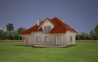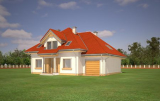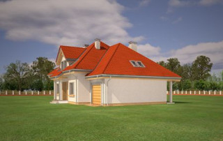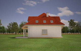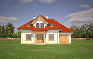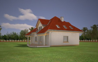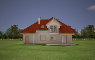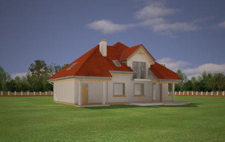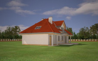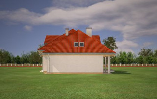 Projekt domu Luka to śliczny domek jednorodzinny dla 4- 6-osobowej rodziny, parterowy z poddaszem użytkowym, przekryty kopertowym dachem, z dobudowanym garażem. Bryła została oparta na planie kwadratu, do którego dołączono część garażową. Kopertowy dach urozmaicają lukarny – frontowa z zadaszeniem nad wejściem, wspartym na dwóch kolumnach, oraz ogrodowa z balkonikiem. Od strony ogrodu zaprojektowano dwa dodatkowe zadaszenia: nad częścią tarasu, przekrywające wyjście z salonu do ogrodu, oraz techniczne – przy wyjściu z pomieszczenia gospodarczego do ogrodu. Architektura domu Luka to połączenie tradycji z nowoczesnością. Dom doskonale wpisze się w każde sąsiedztwo. Wnętrze Luki podzielono na część dzienną i gospodarczą na parterze i pokoje sypialne na poddaszu. Salon połączony z holem i częściowo otwartą kuchnią ze spiżarką tworzą jednoprzestrzenne wnętrze dzienne. Na parterze zaprojektowano też dodatkowe dwa pokoje – wyjątek w tej wielkości domach. Pokoje mogę pełnić funkcję gabinetu czy sypialni gościnnej, ale mogą też być pokojem babci. Na dole przewidziano też garaż i sporą kotłownię. Na poddaszu znajdują się trzy sypialnie – dwie dziecięce o tej samej wielkości, ze wspólną łazienką, oraz wygodna sypialnia rodziców z widokiem na ogród, balkonem, garderobą i własną łazienką. Nad częścią garażową znajduje się strych, który można zaadaptować na dodatkowy pokój. Luka to propozycja dla osób lubiących bezpretensjonalną architekturę, niesilącą się na nowoczesność za wszelką ceną, a jednocześnie niechcących typowego polskiego dworku. To bardzo praktyczny dom, z dużą ilością pokoi, z dużymi możliwościami aranżacji wnętrz, budynek o prostej konstrukcji, energooszczędny, niedrogi w budowie i późniejszej eksploatacji. Pracownia posiada wersję odbicia lustrzanego projektu.