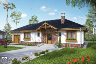 Sympatyczny dom parterowy z garażem i poddaszem możliwym do wykorzystania jako strych magazynowy, z wyraźnym podział na strefy: dzienną (kuchnia ze spiżarnią, wc, jadalnia i pok.dzienny) i nocną (3 pokoje sypialne i łazienka. Do podanej powierzchni użytkowej nie wliczono powierzchni garażu i pomieszczenia technicznego... Sprawdź inne projekty domów - Zapraszamy !