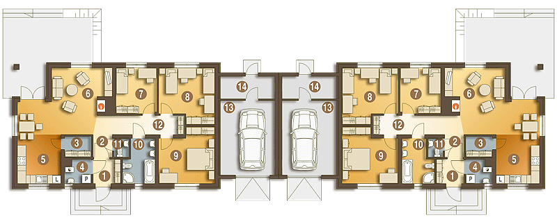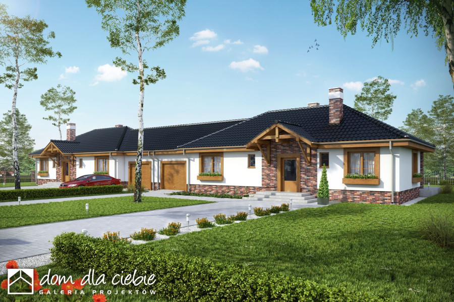 (Uwaga: projekty typu bliźniak oferujemy jako domy dwulokalowe, projekt można zamówić również w zabudowie bliźniaczej) Każdy z segmentów budynku to sympatyczny dom parterowy z garażem i poddaszem możliwym do wykorzystania jako strych magazynowy, z wyraźnym podział na strefy: dzienną (kuchnia ze spiżarnią, wc, jadalnia i pok.dzienny) i nocną (3 pokoje sypialne i łazienka. Do podanej powierzchni użytkowej nie wliczono powierzchni garażu i pomieszczenia technicznego... Sprawdź inne projekty domów - Zapraszamy !