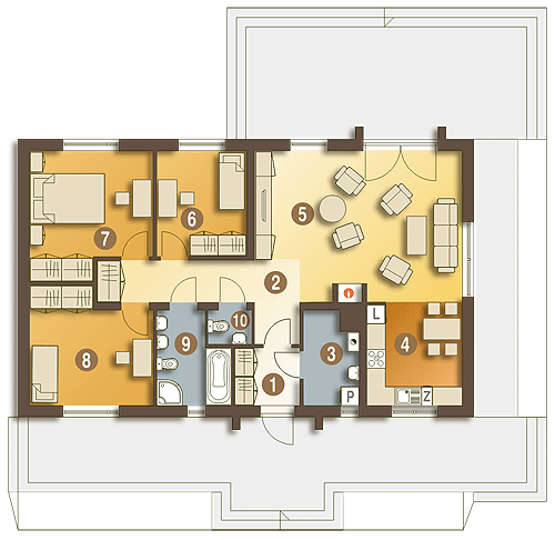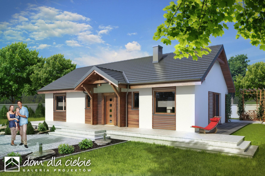 Filipek II to zmodyfikowana wersja popularnego projektu domu Filipek, naszego autorstwa z Galerii Projektów Dom Dla Ciebie. Jest to nadal dom parterowy, który dostępny jest oczywiście w różnych wariantach: z garażem jedno i dwustanowiskowym. Warianty z garażem można z powodzeniem wykorzystać do zabudowy bliźniaczej, a każdy z wariantów jest dostępny w lustrzanym odbiciu. Funkcjonalnie w projekcie przewidziano wyraźny podział na strefę ogólną, do której zaliczymy salon i otwartą kuchnię oraz prywatną z trzema sypialniami i wygodną łazienką. W projekcie, jako paliwo grzewcze przewidziano paliwo gazowe, jednak dzięki wielkości kotłowni i bezpośredniemu dostępowi do komina, z powodzeniem można tu zastosować piec np. na tańsze paliwo - stałe. *Do podanej powierzchni użytkowej nie wliczono powierzchni garażu i pomieszczenia technicznego... Sprawdź inne projekty domów - Zapraszamy !