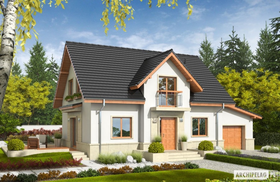 Charakterystyka: Dom parterowy z poddaszem użytkowym, niepodpiwniczony, z garażem jednostanowiskowym Przeznaczenie: Dom dla 4-5 osobowej rodzinyTechnologia i konstrukcja: Ściany zewnętrzne: murowane Strop: gęstożebrowy Dach: konstrukcja drewniana, dachówka płaska lub inna o podobnych parametrach Rozwiązania instalacyjne: Ogrzewanie: kocioł gazowy, rozprowadzenie ciepła: grzejniki Wentylacja: grawitacyjna Wykończenie: Elewacje: tynk mineralny i okładzina kamienna, cokół kamienny Stolarka: drewniana lub PCVWersje - zapytaj o dostępność: - Flawia – bez garażu - Flawia G2 – z garażem dwustanowiskowym - Odbicia lustrzane do wszystkich wersji Istnieje techniczna możliwość: - zbliźniaczenia - wykonania domu dwulokalowego
