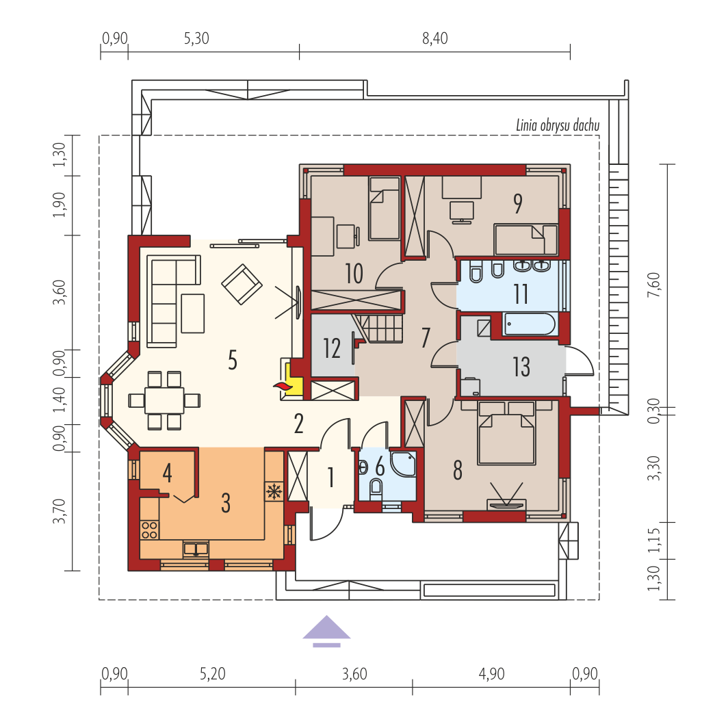 Charakterystyka: Dom parterowy, niepodpiwniczony Przeznaczenie: Dom dla 3-4-osobowej rodziny Technologia i konstrukcja: Ściany zewnętrzne: murowane Strop: międzypiętrowy gęstożebrowy Dach: konstrukcja drewniana, ocieplenie wełna mineralna, dachówka ceramiczna Röben Inne: schody wewnętrzne drewniane.Rozwiązania instalacyjne: Ogrzewanie: kocioł gazowy, rozprowadzenie ciepła: grzejniki Wentylacja: grawitacyjna Wykończenie: Elewacje: tynk mineralny z okładziną kamienną, ceramiczną lub drewnianą. Cokół kamienny Stolarka: drewniana lub PCVWersje - zapytaj o dostępność: - Flori II – z garażem jedno lub dwustanowiskowym - Flori – inny układ funkcjonalny, kąt nachylenia dachu 25/22°, nez schodów i strychu, różne wersje garaży - Flori III i III ECONOMIC (wersja A) – inny układ funkcjonalny, kąt nachylenia dachu 28°, poddasze do adaptacji na cele mieszkalne, inna forma wykusza, różne wersje garaży - Flori III G1 (wersja B) Leca® DOM – dom w technologii Leca® KERAMZYTU - Flori II (30 stopni) - kąt nachylenia dachu 30° - Flori III (30 stopni), Flori III G2 (30 stopni) - kąt nachylenia dachu 30° - Flori III ECONOMIC (wersja A) 30 stopni - kąt nachylenia dachu 30°, bez garażu, z garażem jedno- i dwustanowiskowym - Każda wersja z inna propozycją wykończenia elewacji - Odbicia lustrzane do wszystkich wersjiIstnieje techniczna możliwość: - podpiwniczenia budynku - zmiany kąta nachylenia dachu do 30° - adaptacji poddasza