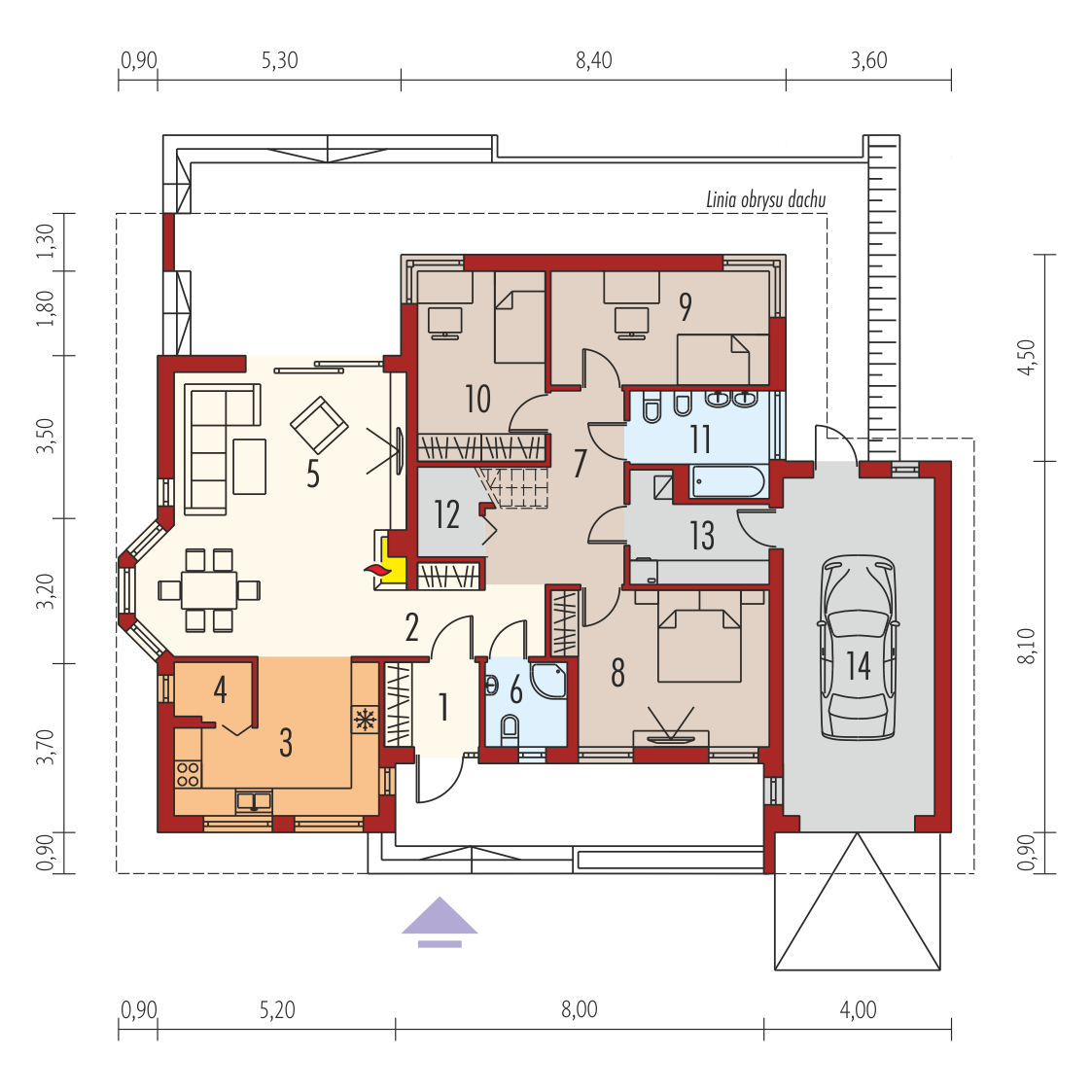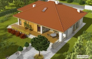 Charakterystyka: Dom parterowy, niepodpiwniczony, z garażem jednostanowiskowym Przeznaczenie: Dom dla 3-4-osobowej rodziny Technologia i konstrukcja: Ściany zewnętrzne: murowane Strop: międzypiętrowy gęstożebrowy Dach: konstrukcja drewniana, ocieplenie wełna mineralna, dachówka ceramiczna Röben Inne: schody wewnętrzne drewniane.Rozwiązania instalacyjne: Ogrzewanie: kocioł gazowy, rozprowadzenie ciepła: grzejniki Wentylacja: grawitacyjna Wykończenie: Elewacje: tynk mineralny z okładziną kamienną, ceramiczną lub drewnianą. Cokół kamienny Stolarka: drewniana lub PCV, drzwi wewnętrzne, zewnętrzne oraz brama garażowa firmy HormannWersje - zapytaj o dostępność: - Flori III – bez garażu i z garażem dwustanowiskowym - Flori – inny układ funkcjonalny, kąt nachylenia dachu 25/22°, bez schodów i strychu, inna forma wykusza, różne wersje garaży - Flori II – inny układ funkcjonalny, kąt nachylenia dachu 22°, poddasze ze strychem, inna forma wykusza, różne wersje garaży - Flori III ECONOMIC (wersja A) – podobny układ funkcjonalny, drobne zmiany w elewacjach, różne wersje garaży - Flori III G1 (wersja B) Leca® DOM – dom w technologii Leca® KERAMZYTU - Flori II (30 stopni) - kąt nachylenia dachu 30° - Flori III (30 stopni), Flori III G2 (30 stopni) - kąt nachylenia dachu 30° - Flori III ECONOMIC (wersja A) 30 stopni - kąt nachylenia dachu 30°, bez garażu, z garażem jedno- i dwustanowiskowym - Każda wersja z inna propozycją wykończenia elewacji - Odbicia lustrzane do wszystkich wersjiIstnieje techniczna możliwość: - podpiwniczenia budynku - zmiany kąta nachylenia dachu do 30° - zbliźniaczenia